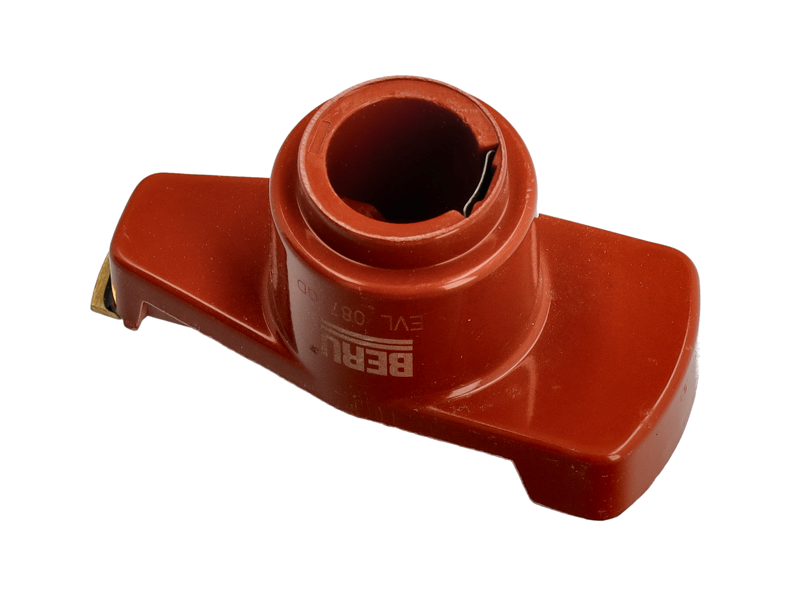 Il rotore è costruito in modo tale che la linguetta centrale sia collegata elettricamente al suo bordo esterno in modo che la tensione che entra nel perno centrale viaggi attraverso la punta di carbonio fino al bordo esterno del rotore. Mentre l'albero a camme ruota, il rotore gira e il suo bordo esterno passa ciascuno dei terminali interni della candela per accendere ciascuna candela.