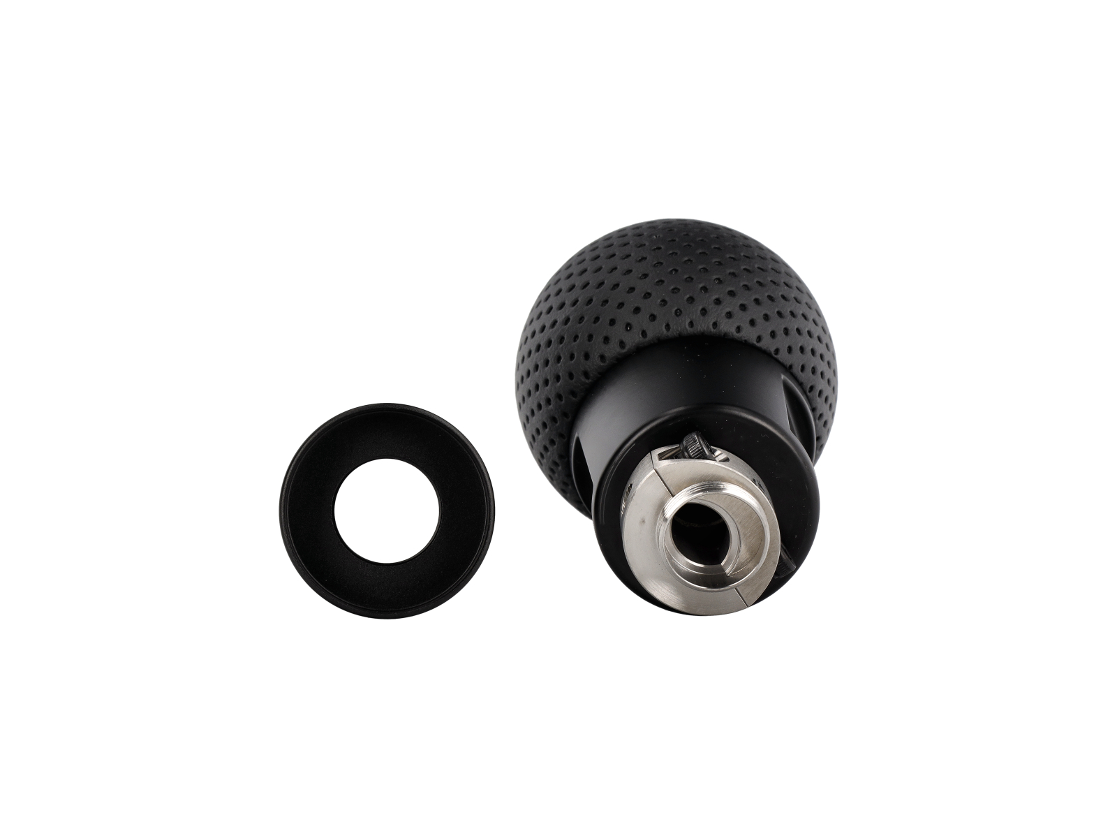 Realizzato artigianalmente in alluminio e acciaio di prima qualità, questo pomello del cambio vanta una finitura nera opaca e pesa 400 grammi. È progettato per essere 1,5 pollici più corto del pomello standard, offrendo un'estetica migliorata e una presa raffinata. Disponibile singolarmente in alluminio nero opaco o con una cuffia del cambio in pelle nera con cuciture nere, rosse, bianche e gialle, si abbina perfettamente ai tuoi interni.