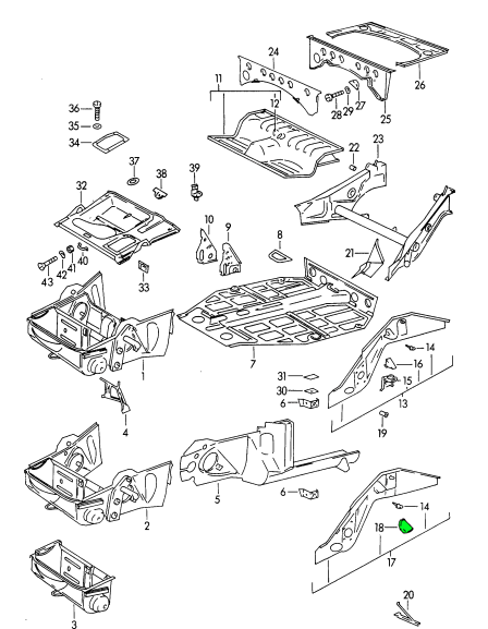 Pannelli di riparazione autentici della sezione centrale per modelli Porsche storici come la 356, la 911 Classic e la 912. Progettati per la replica esatta dei modelli OEM e per il restauro a livello di concorso.