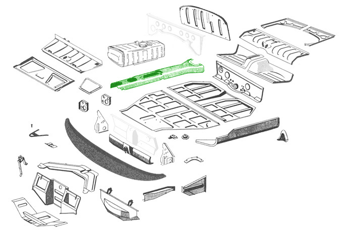 Sostituzione delle sezioni del tunnel centrale e dei rinforzi per ripristinare la rigidità e proteggere i tubi del carburante e dei freni all'interno della struttura del telaio.