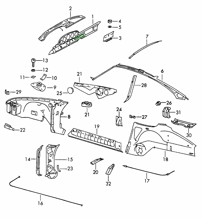 Pannelli di riparazione di alta qualità per longheroni e sottoporta, realizzati secondo il design originale Porsche. Rinforzano le strutture laterali ed eliminano i danni da corrosione.