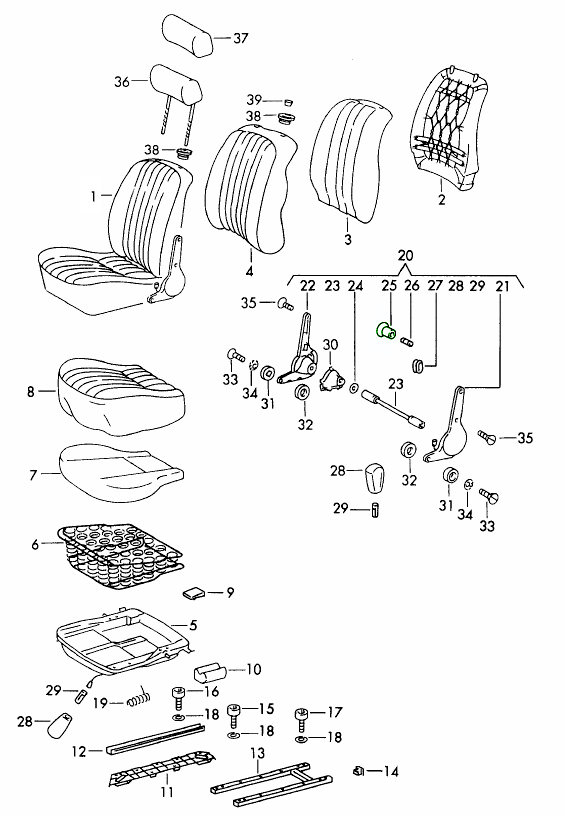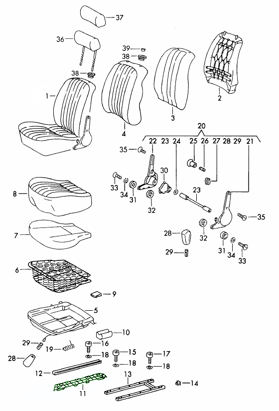 Ogni componente contribuisce al funzionamento fluido del sedile, garantendo che la sensazione di guida della tua Porsche rimanga precisa e confortevole.