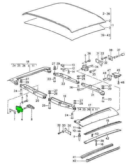 - Mantiene in posizione i componenti del telaio del tetto Targa/capote in tela nella sezione anteriore. Può fissare la parte anteriore del tetto/testata, oppure i fermi o gli attacchi dove la capote si aggancia al telaio del parabrezza anteriore o al telaio del tetto.