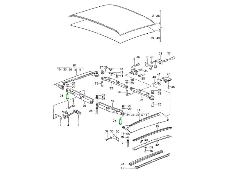 La nostra collezione comprende pannelli del tetto rimovibili, chiusure, guarnizioni e rivestimenti del padiglione realizzati secondo le specifiche OEM, garantendo un allineamento perfetto e un isolamento acustico per la tua Porsche Targa classica o moderna.