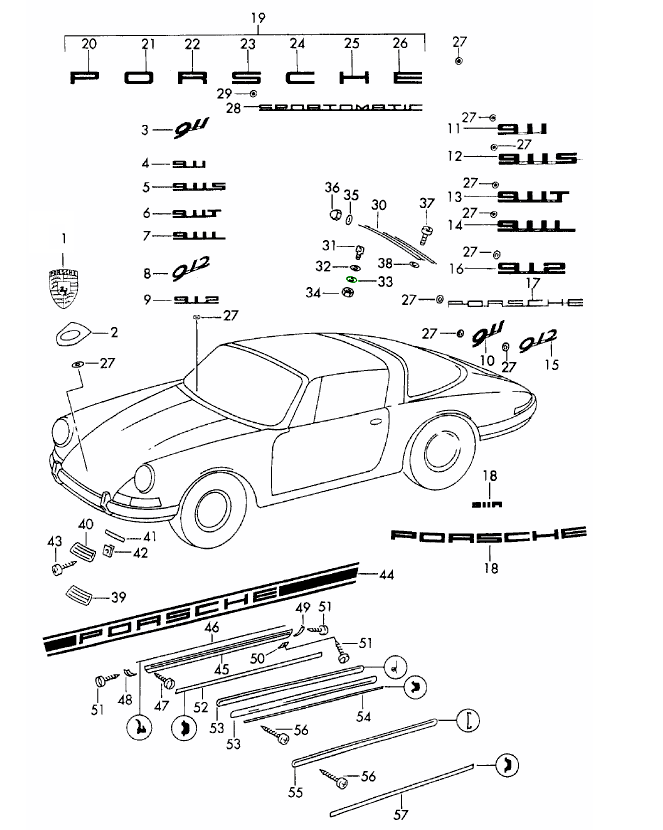 Parti classiche per bagagliaio e chiusura posteriore Porsche