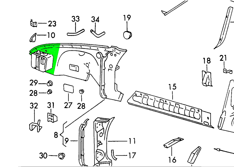 Pannelli di restauro per parafanghi e ali interne in stile OEM che garantiscono resistenza strutturale e precisione di montaggio per le riparazioni della carrozzeria Porsche.