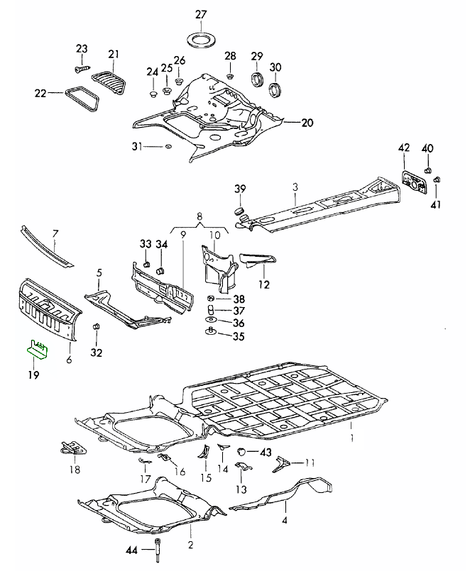 Riproduzione accurata delle paratie e dei pannelli del pavimento anteriori, progettati per durare a lungo e in linea con l'ingegneria originale Porsche.