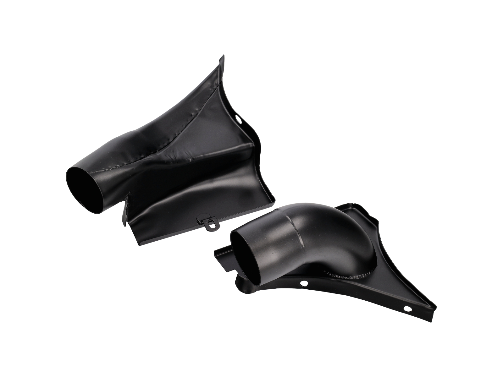 Set di due convogliatori di uscita dell'aria per l'alloggiamento della ventola motore OE Match, progettati come sostituti diretti per i condotti di uscita della ventola Porsche originali sui modelli con motore raffreddato ad aria. Questi convogliatori dirigono l'aria di raffreddamento dalla ventola motore verso le testate dei cilindri e gli accessori, garantendo un controllo ottimale della temperatura del motore e una gestione ottimale del flusso d'aria.