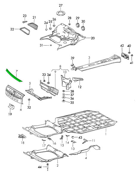 Piastra della sezione anteriore del pavimento con apertura per l'aria condizionata.