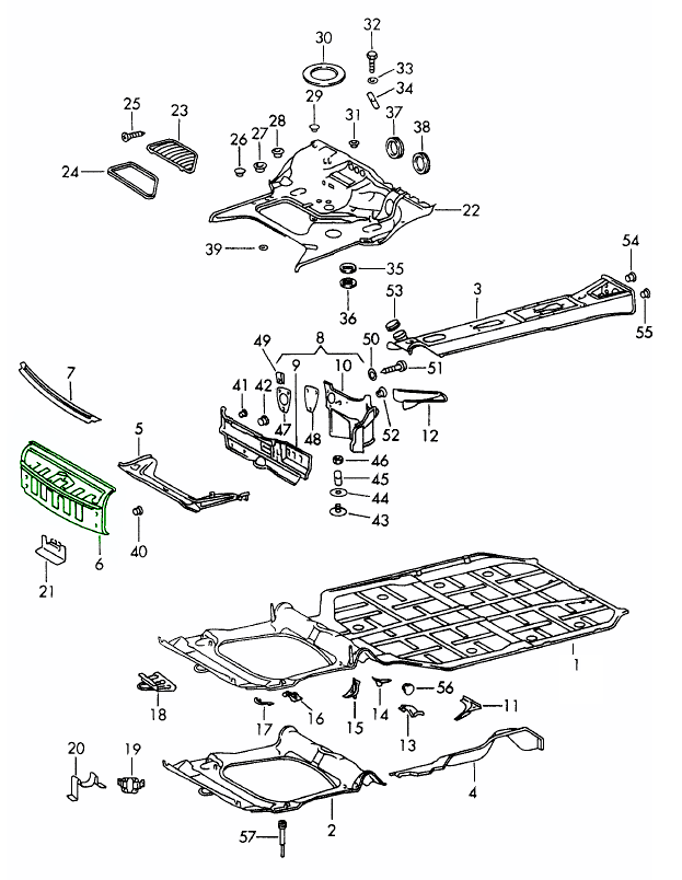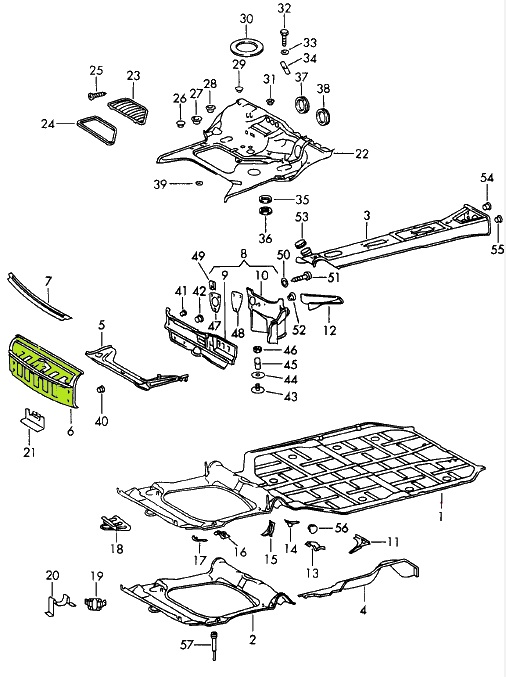 Riproduzione accurata delle paratie e dei pannelli del pavimento anteriori, progettati per durare a lungo e in linea con l'ingegneria originale Porsche.