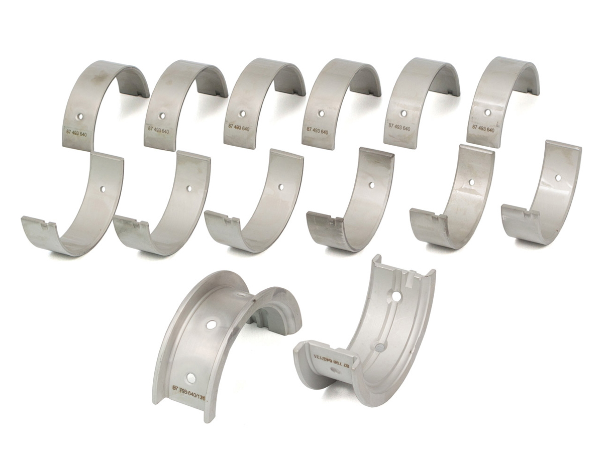 Questo set da 14 pezzi (12 gusci di cuscinetti di banco + 2 cuscinetti reggispinta) sostiene l'albero motore lungo il basamento, mantenendo il gioco, la pressione e l'allineamento ideali del film d'olio per tutta la vita del motore. Realizzato secondo la geometria OEM, il set garantisce un perfetto accoppiamento a compressione, uno spessore delle pareti costante e una lubrificazione stabile alle alte temperature e ai carichi tipici dei motori boxer a sei cilindri Porsche.