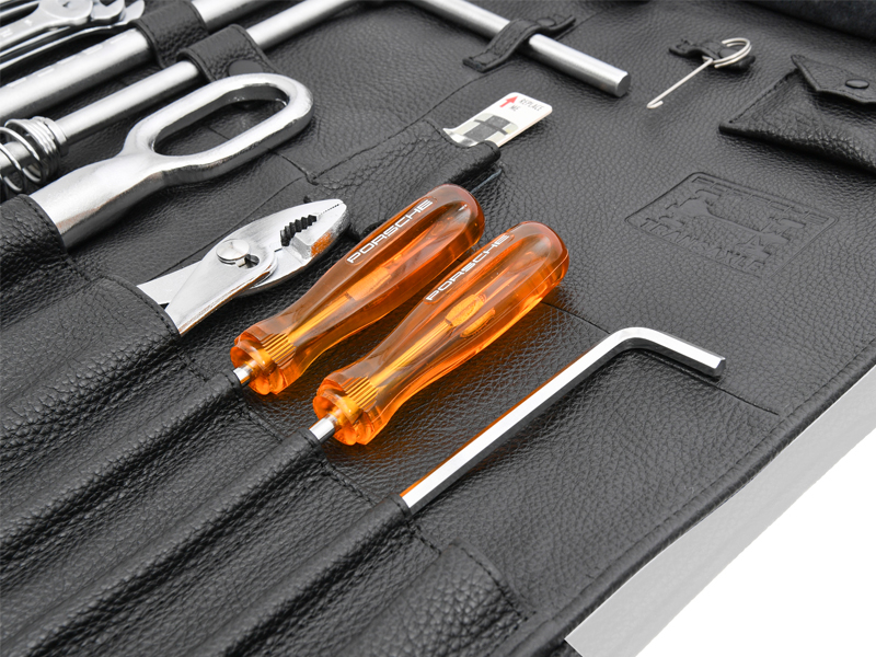 Il contenuto è stato ricostruito sulla base della borsa degli attrezzi originale e ristampato con l'aiuto dei disegni tecnici degli strumenti del fornitore originale dell'epoca. Come ultimo tocco, gli esperti di Porsche Classic hanno apportato alla borsa alcuni aggiornamenti tecnici e visivi e hanno anche aggiunto alcuni strumenti extra utili.