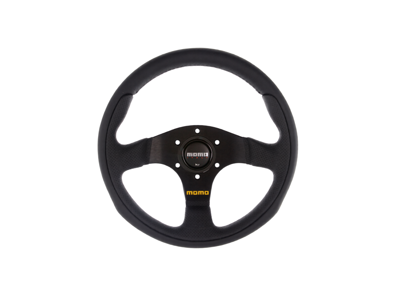 Caratterizzato da un'impugnatura scolpita, razze nere, pulsante del clacson MOMO Italy nero abbinato e logo MOMO giallo a contrasto sulla razza centrale, il Team è un fantastico volante che raggiunge la vera bellezza attraverso la sua semplicità di design.
