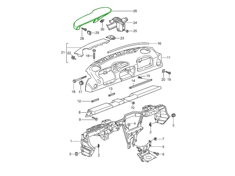 Il Porsche Leather Dash Top è un pannello superiore del cruscotto sostitutivo OEM originale, progettato per i modelli Porsche 911 (996) con guida a destra (RHD) fino al 2002. Rifinito in pregiata pelle nera, questo cruscotto superiore offre la combinazione perfetta di lusso, durata e montaggio corretto in fabbrica.