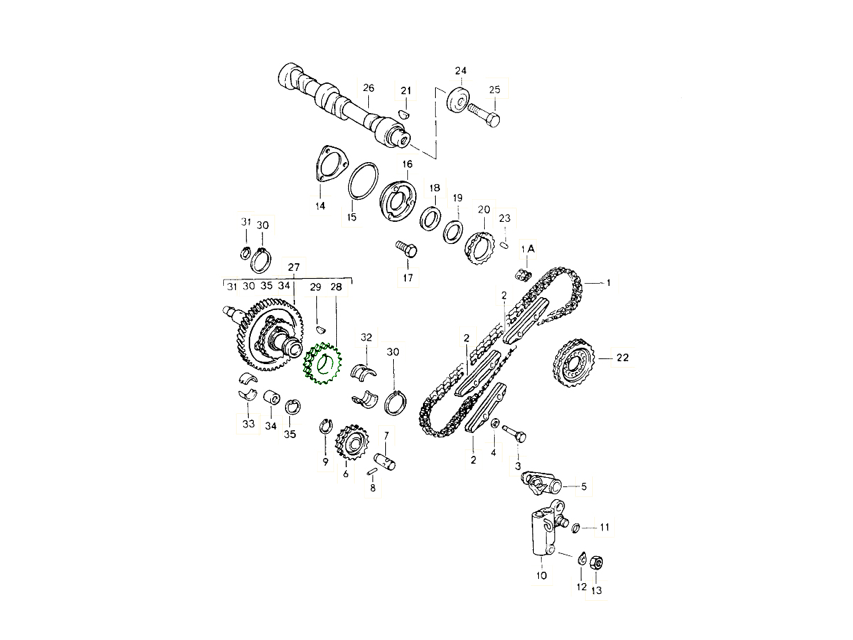 • Funzione: trasmette il moto rotatorio dalla catena di distribuzione alla trasmissione a camme o ai sistemi ausiliari, contribuendo a mantenere l'integrità della fasatura delle valvole del motore.