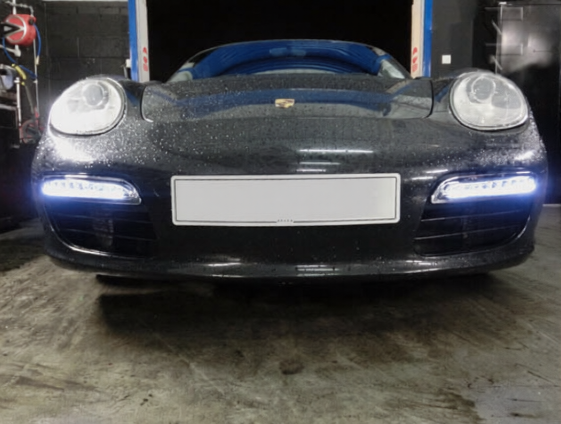 Sostituzione diretta delle luci di marcia diurna a LED di nuovo design (la striscia centrale DRL funziona una volta che l'interruttore della luce laterale è impostato sulla posizione di accensione) per Porsche Boxster 987 (proprio come le versioni 997 MKII con le luci montate in fabbrica).