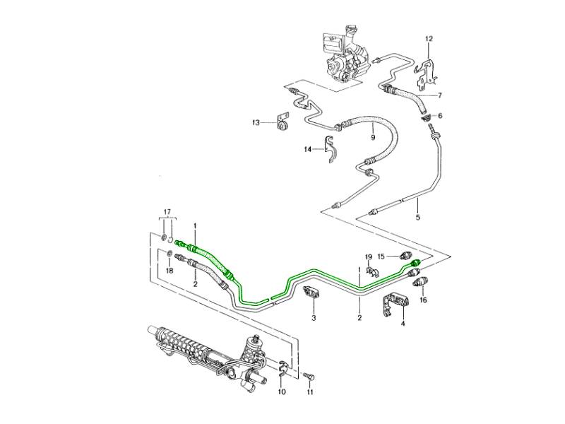 - La linea di pressione trasporta il fluido idraulico ad alta pressione dalla pompa del servosterzo alla scatola dello sterzo o alla cremagliera. Ciò consente al sistema di fornire assistenza allo sterzo del conducente.