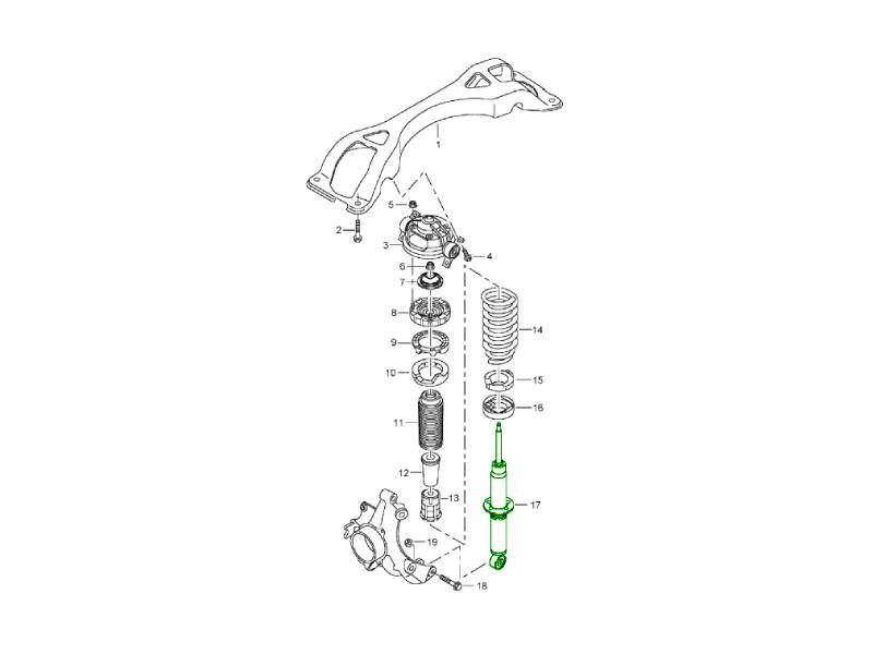 La boccola dell'ammortizzatore posteriore (inferiore) è una boccola di montaggio delle sospensioni di alta qualità progettata per ripristinare il corretto montaggio e isolamento nel punto di montaggio inferiore dell'ammortizzatore posteriore sui modelli Porsche compatibili, comunemente nella gamma di piattaforme Cayenne 955/957. Questa boccola si trova tra l'ammortizzatore e la sua staffa di montaggio inferiore, fornendo un'interfaccia ammortizzata che riduce le vibrazioni e previene il contatto metallo su metallo durante il movimento delle sospensioni.