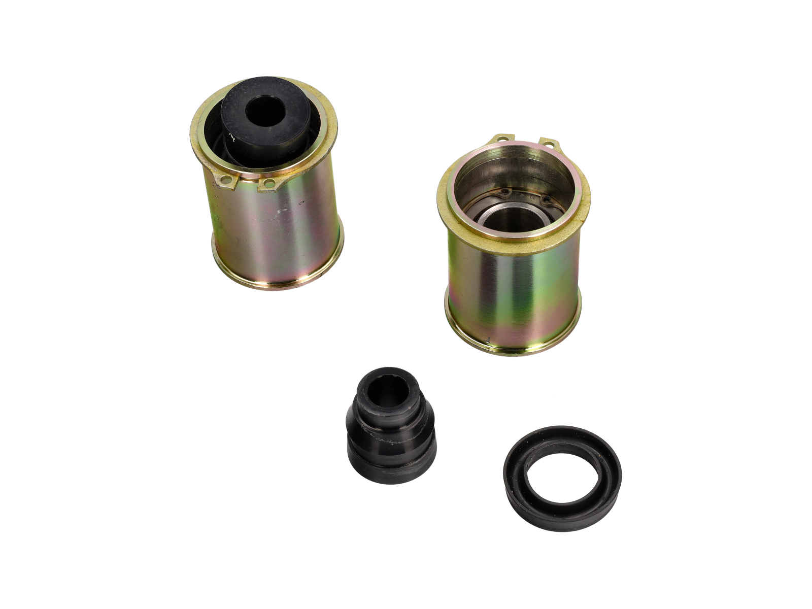 La boccola esterna del braccio di controllo anteriore è dotata di un manicotto regolabile in alluminio leggero che consente la regolazione delle ruote orientabili sull'auto, sempre nelle nostre esclusive boccole in poliuretano.