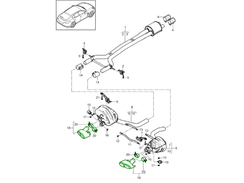 Porsche 970 Panamera S / GTS 2011-13 per vetture Senza OPZIONE: TERMINALI DI SCARICO PANAMERA SPORT (Codice opzione: IXLR)