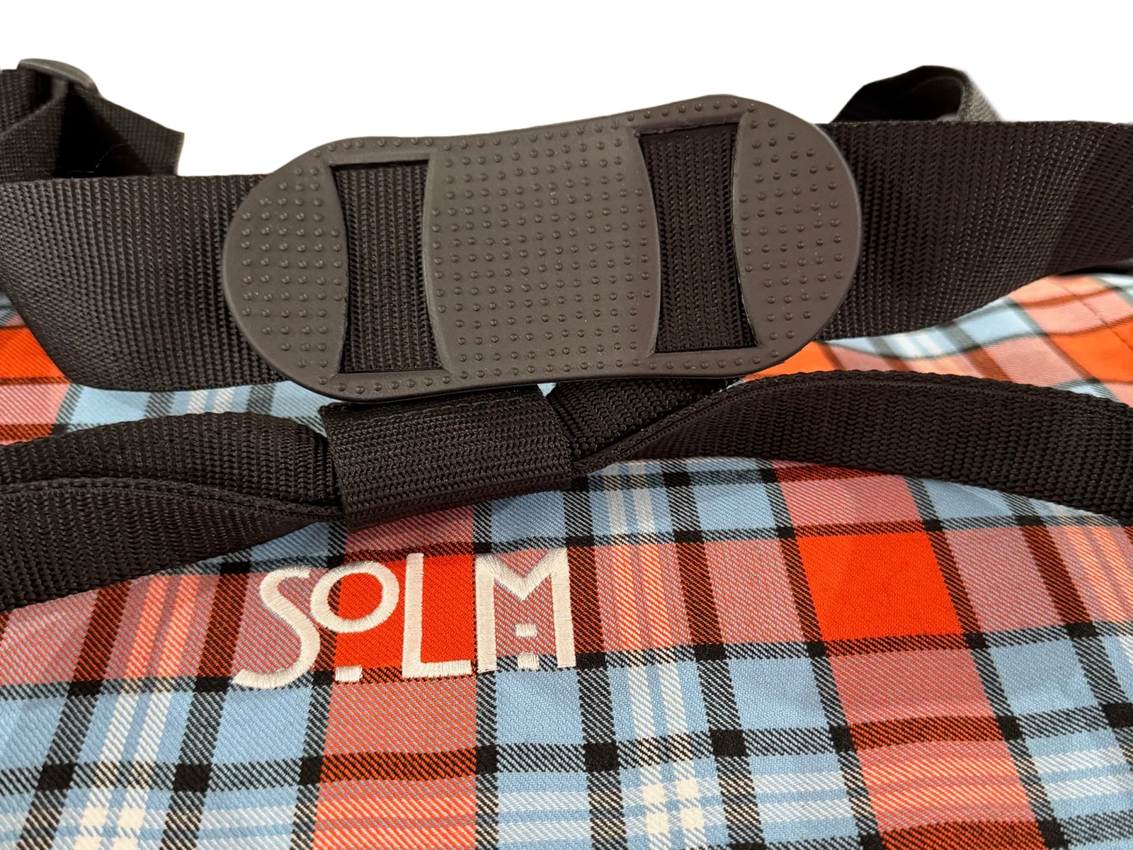 Borsa in tartan di poliviscosa SOLM (Racing), corpo in PVC da 610 g/m² con tracolla, maniglia principale e maniglie laterali su entrambe le estremità per una facile movimentazione. Tutte le cinghie/cinghie sono in polipropilene.