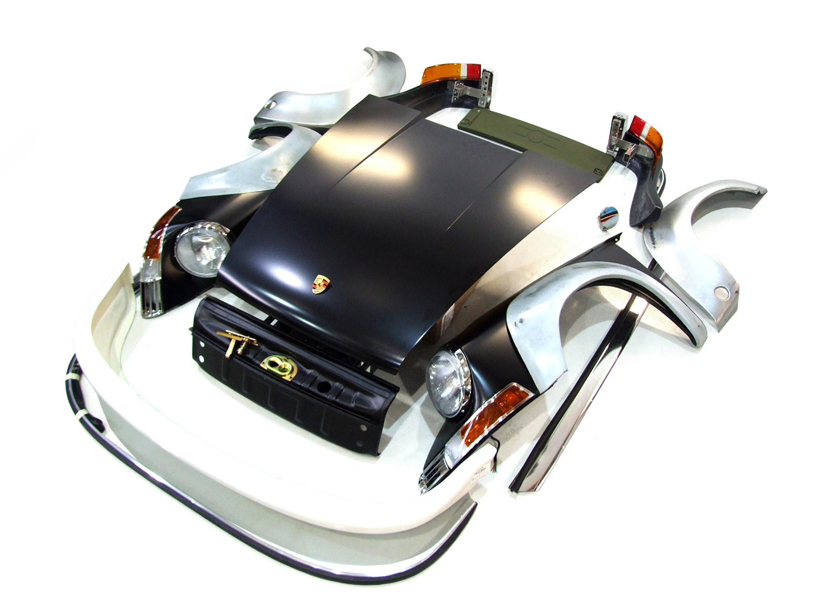 Metalen boogverlengingen voor en achter, carrosseriedelen voor, carrosseriedelen achter, dorpels, spiegels, rubbers, lenzen en badges **Deze set kan ook worden gebruikt om Porsche tot 1989 & 964 modellen te "backdateren". Houd er rekening mee dat uw schadeherstelbedrijf over de capaciteiten en vaardigheden moet beschikken om deze onderdelen in uw auto te laten passen. Houd er rekening mee dat we indien nodig sommige opties van de onderdelen kunnen wijzigen.