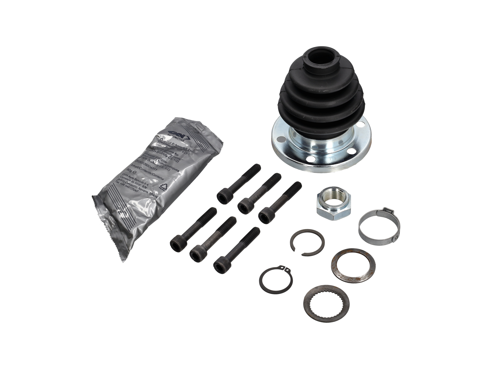 Deze hoogwaardige CV-ashoesset is de ideale oplossing voor het herstellen van uw ophangingssysteem. Hij bevat alles wat u nodig hebt voor een vakkundige, duurzame reparatie: hoogwaardige rubberen hoes, CV-vet, ring en borgring – alles handig verpakt voor een complete en eenvoudige installatie.