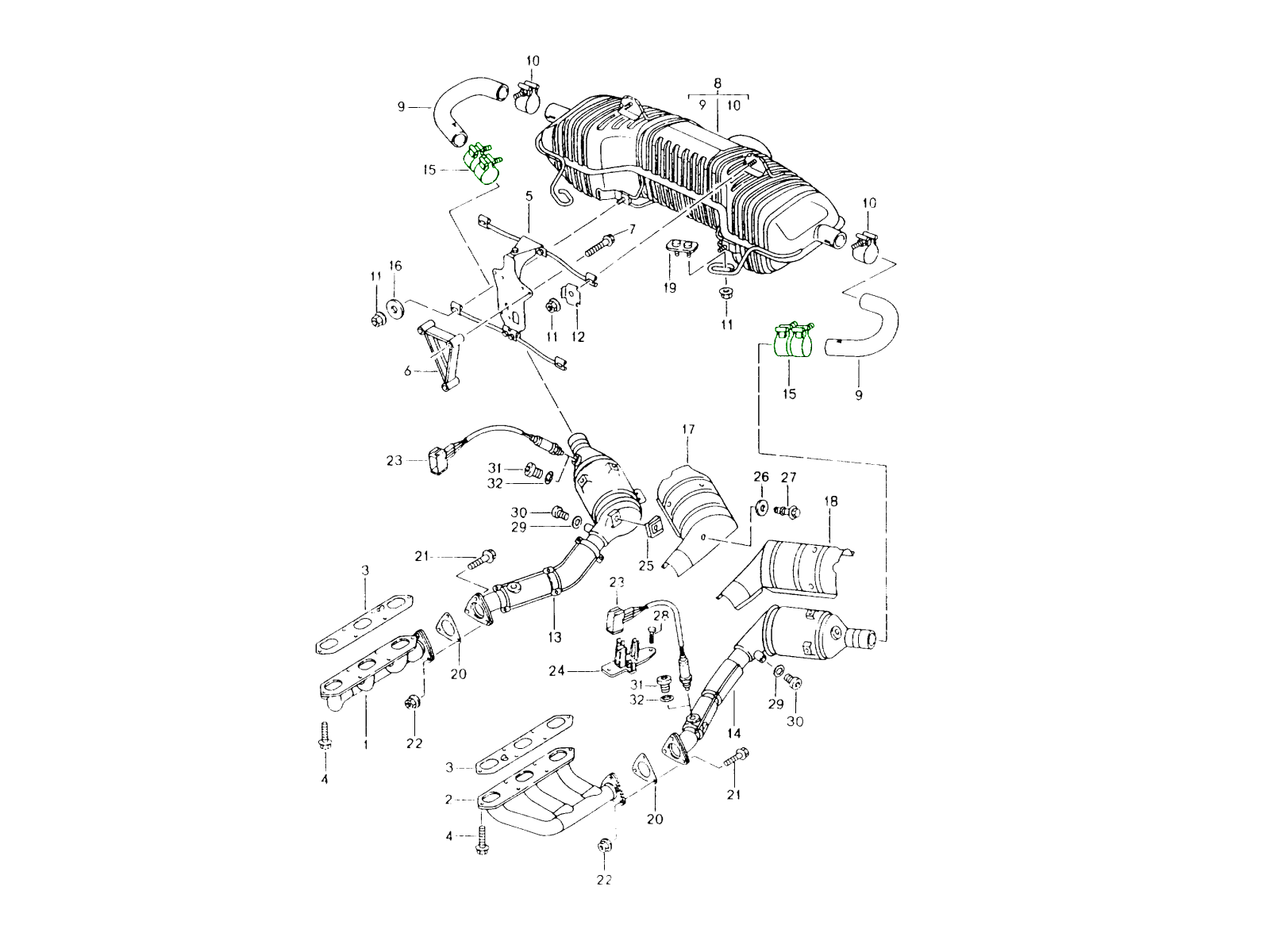 Door versleten of beschadigde uitlaatbevestigingsmaterialen te vervangen, zorgt u ervoor dat het uitlaatsysteem van uw Porsche stabiel, stil en vrij doorstromend blijft.