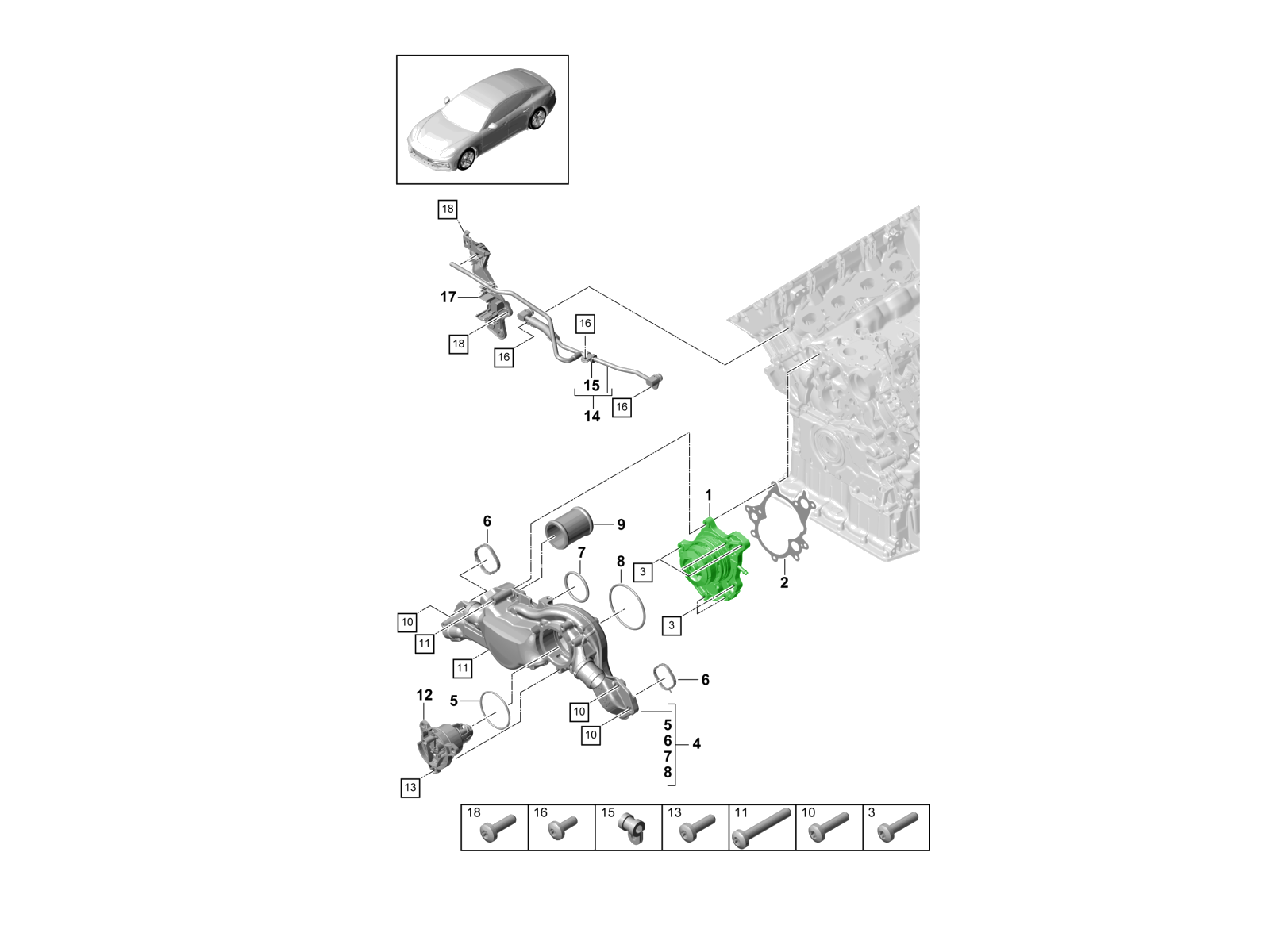 Waterpompset voor Porsche 9YA Cayenne & 971 Panamera 4.0-liter V8-motoren (inclusief hybride modellen)