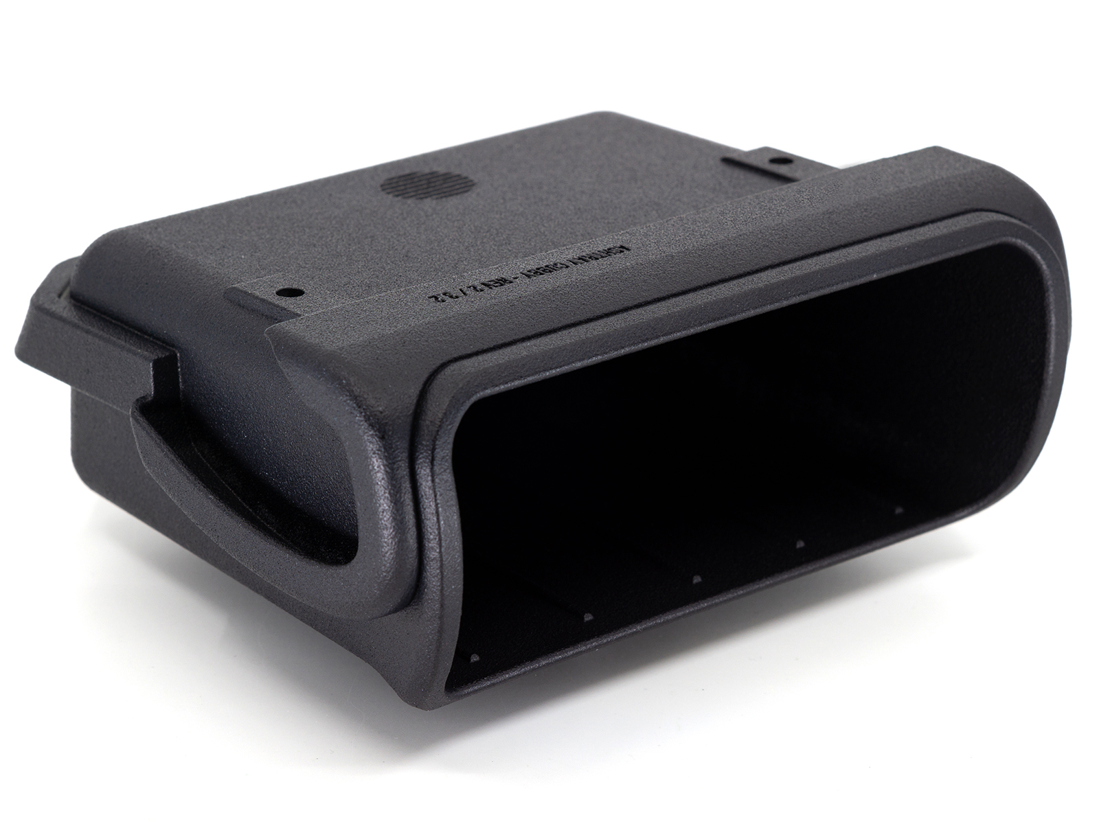 Manufactured from black PA12 nylon, the part offers excellent durability and a finish consistent with typical automotive interior plastics.
