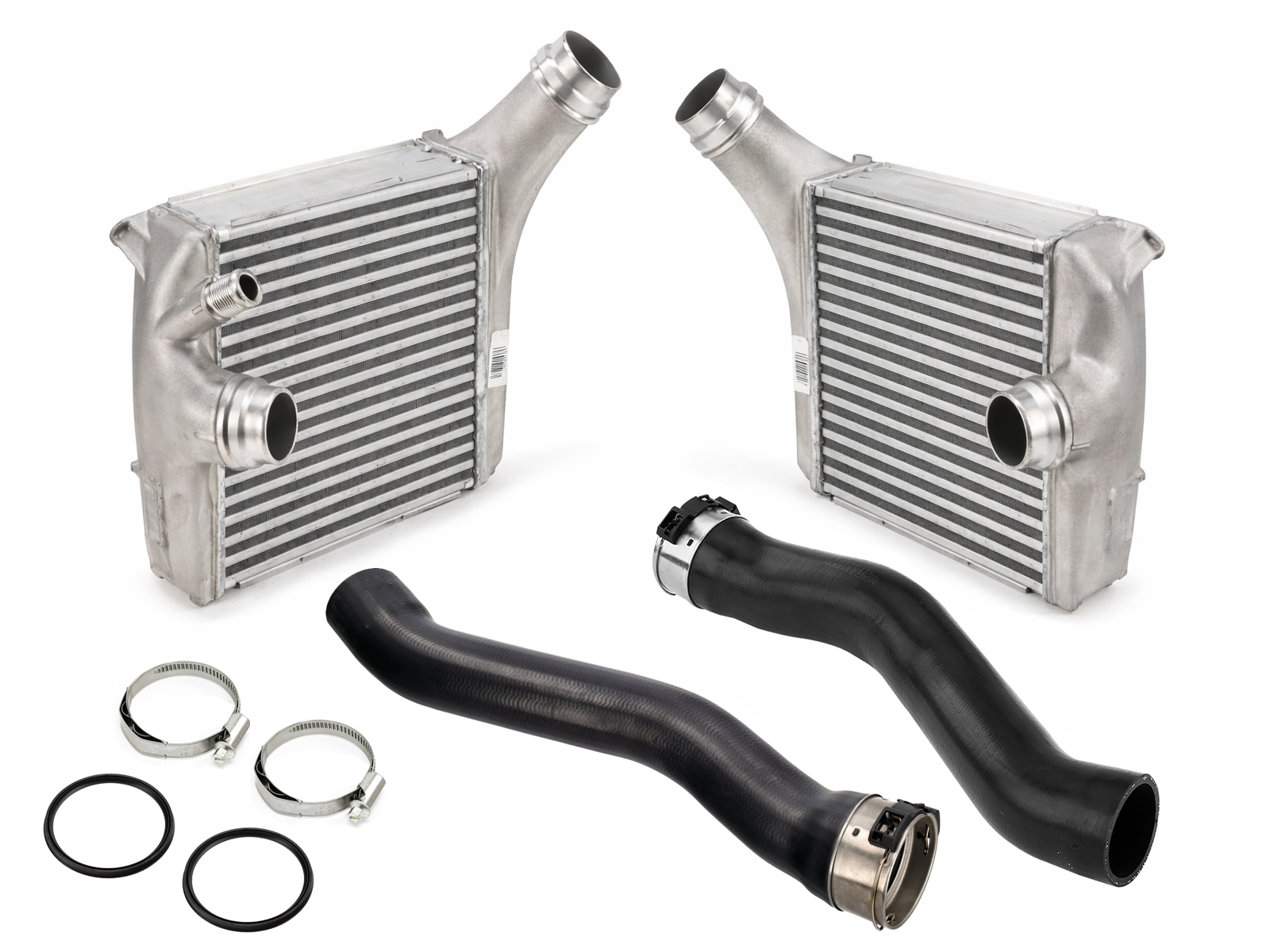 Charge oil cooler and pipesThis OE Match intercooler and pipes set is a complete twin-intercooler cooling solution designed to replicate the original Porsche charge-air cooling components for the 970 Panamera 4.8 L Turbo. The kit includes both left and right intercooler cores and matching pressure pipes, providing an integrated, direct-fit replacement package engineered for proper boost airflow and turbo efficiency.
