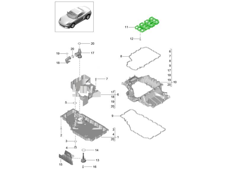 The oil separator for the oil sump is an essential component of the engine crankcase ventilation and oil management system, designed to separate oil from blow-by gases before they are recirculated through the engine. This helps prevent excess oil from entering the intake system while ensuring efficient oil return to the sump.