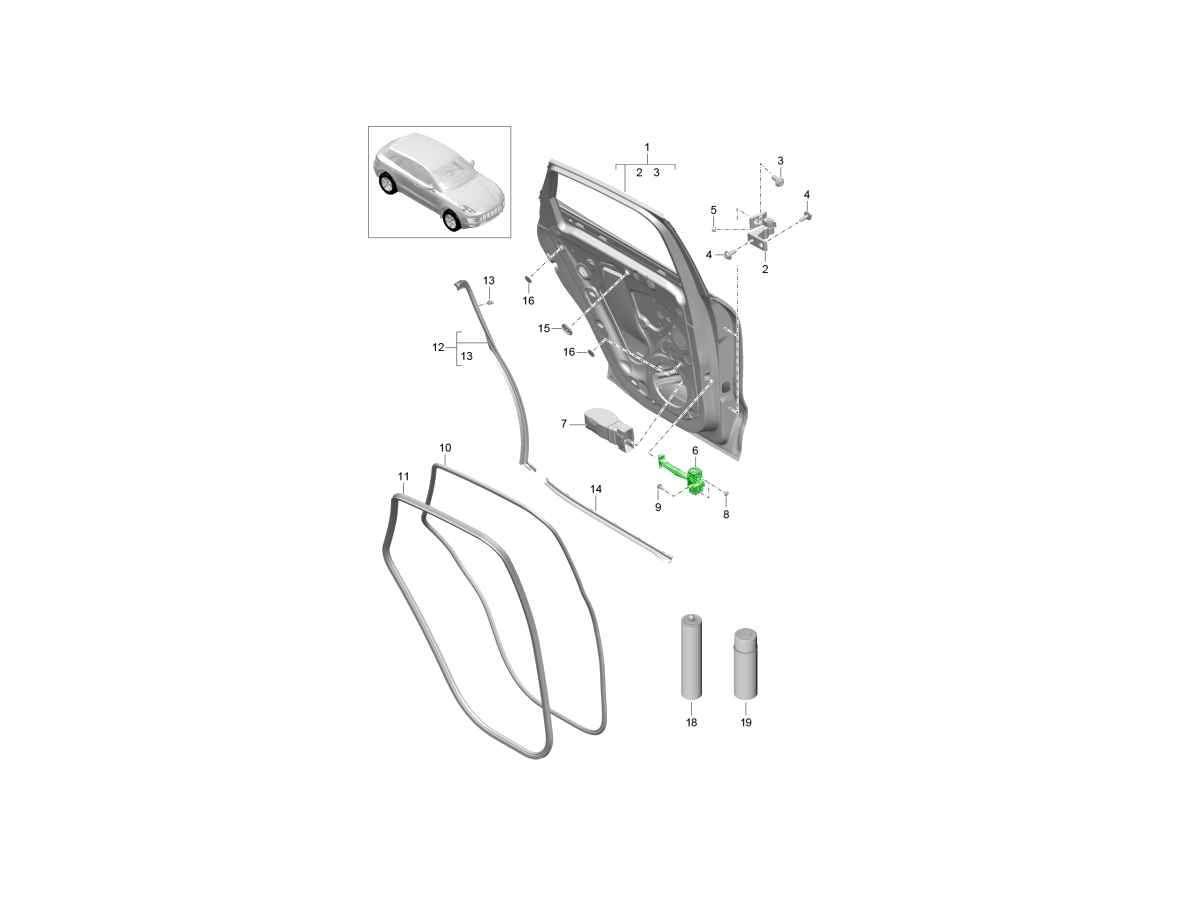 The rear door check strap for the Porsche 95B Macan is a critical component of the door hinge and opening system. Also known as a door stay or door brake, this part controls how far the door opens and holds it securely in position at specific opening angles.