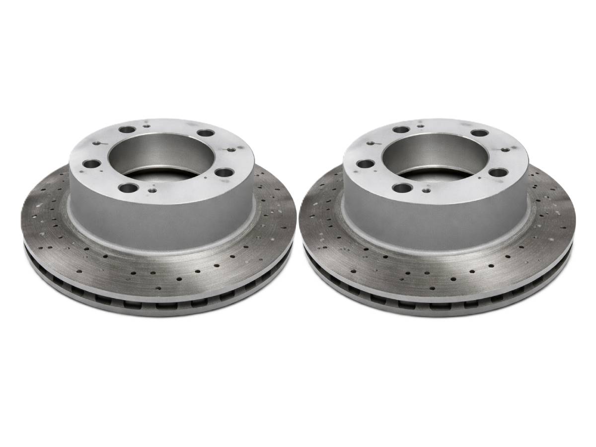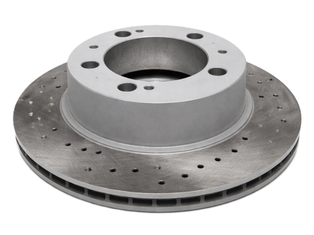 - Enhances heat dissipation through cross-drilled ventilation