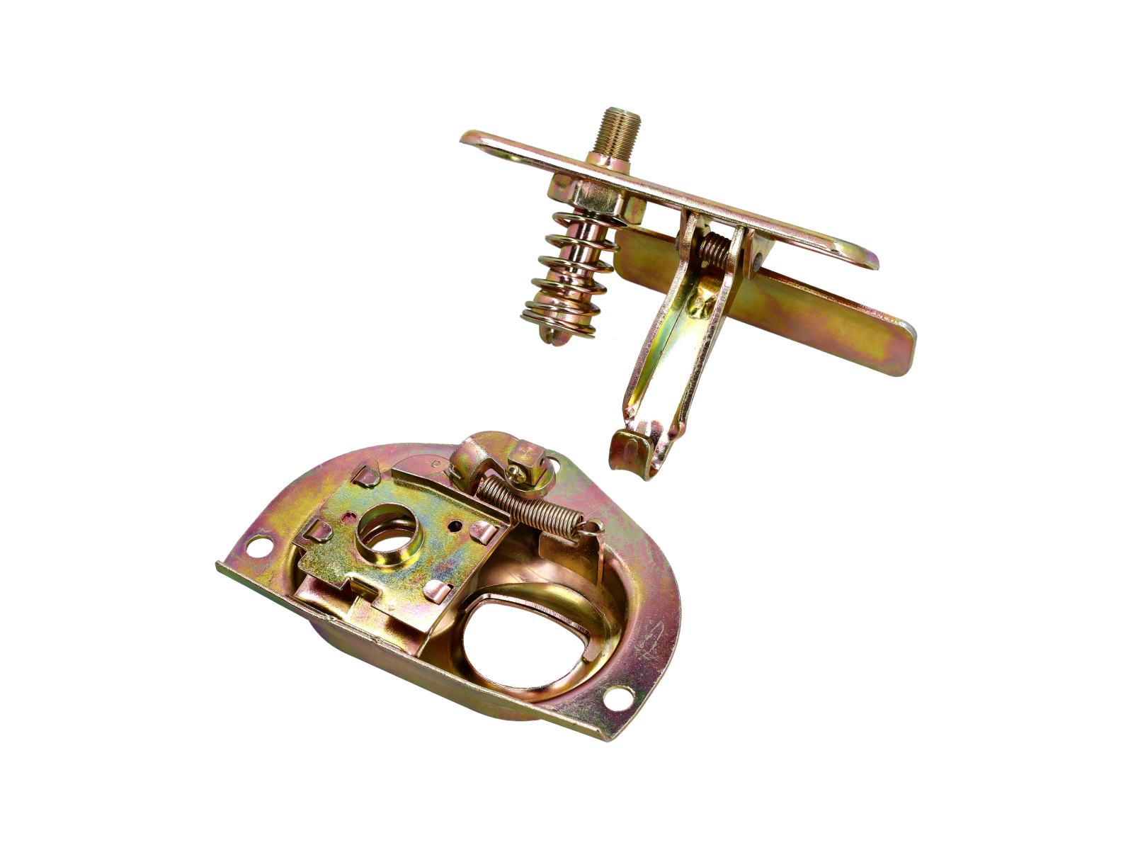 OE Match replacement upper latch assembly that secures the front bonnet (hood) on early Porsche 911 models (1965–1973). This latch engages with the bonnet striker to hold the hood firmly closed and works in conjunction with the lower latch and release cable to provide safe, reliable operation.