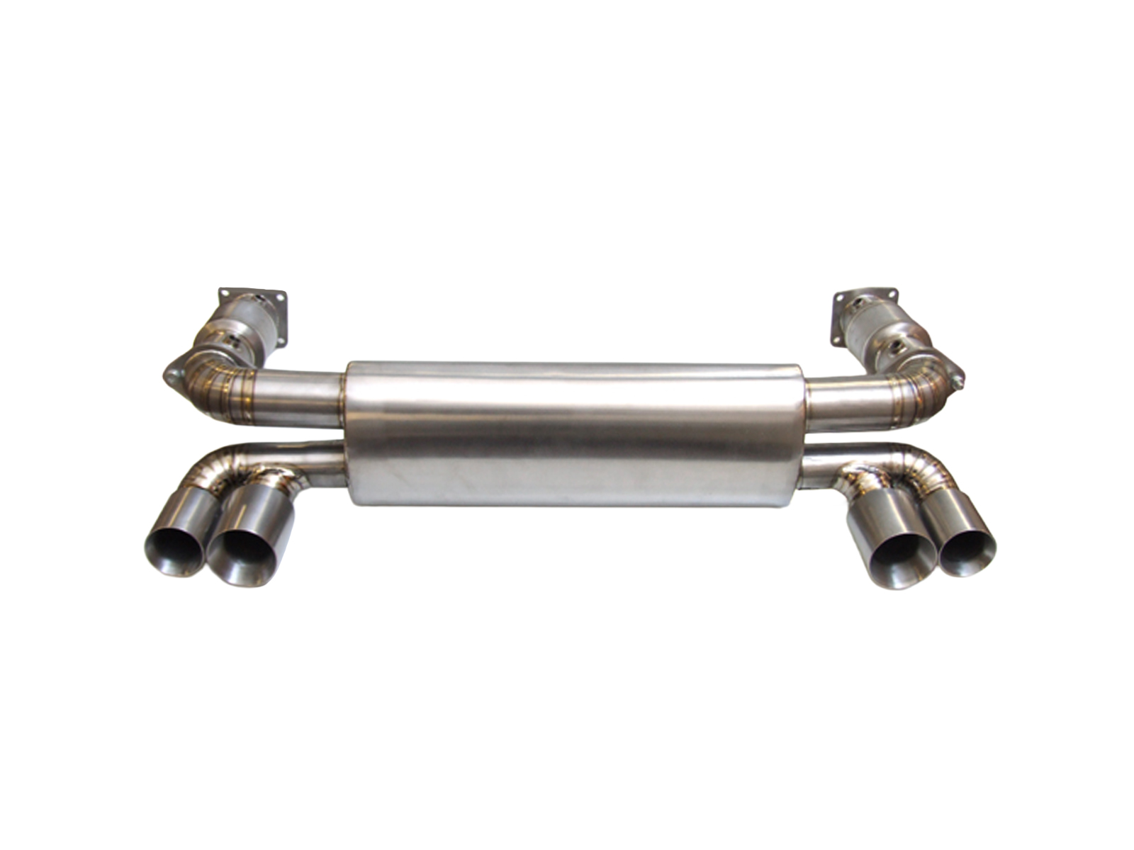 Stainless steel sports tailpipes with elegant four-tube styling.