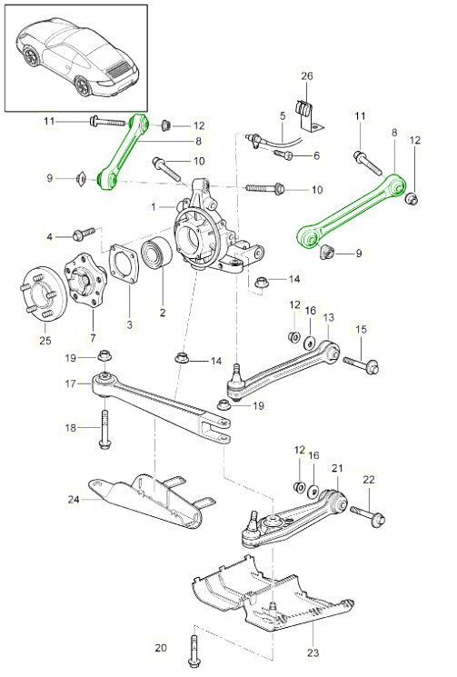 If you're serious about how your 993, 996, 997, Cayman, or Boxster handles, you should upgrade the rear suspension with adjustable control arm links. There are two major drawbacks to the factory links: