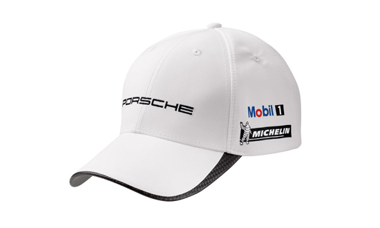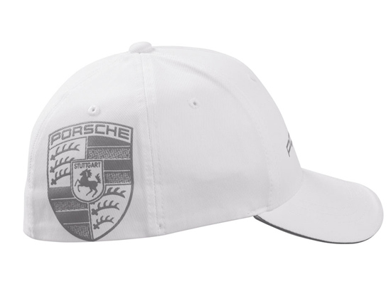 Perforated five-panel baseball cap with snap-back fastener and 'PORSCHE MOTORSPORT' signet. At the back, there is a button with 'PORSCHE' logo in the middle.