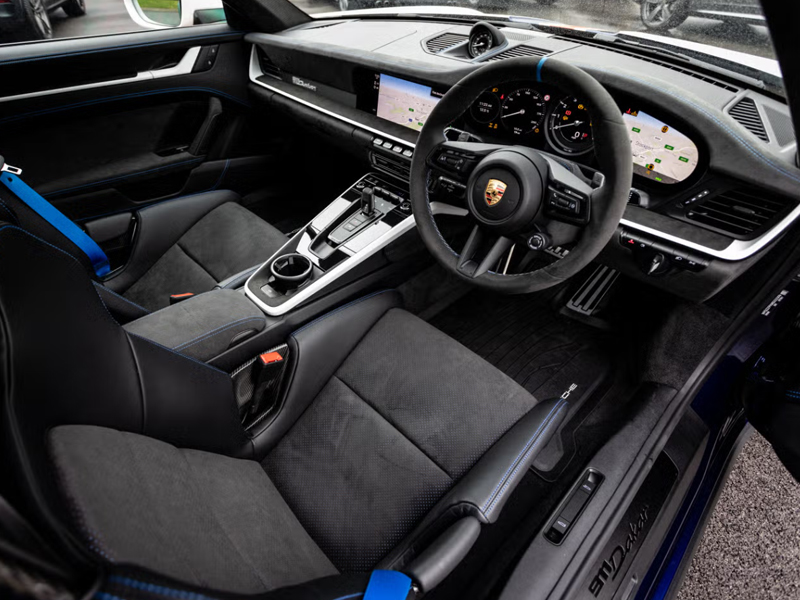 Interior colour: Race-Tex interior Rallye Design Package with extensive items in leather, stitching Sharkblue