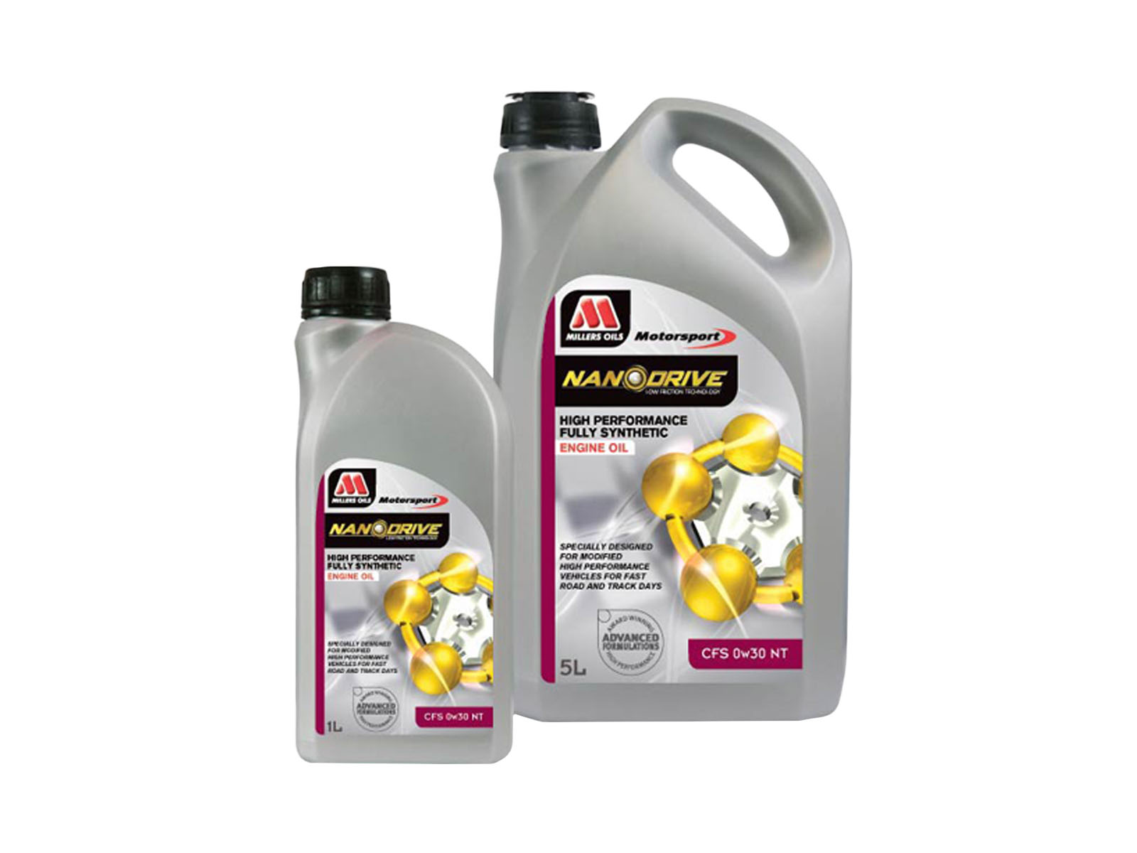 A competition fully synthetic transmission oil formulated using a unique combination of improved chemistry and lower friction NANODRIVE additives to massively reduce friction vs a standard oil. The Millers Oils range of competition gear oils is fully synthetic and incorporates second generation NANODRIVE low friction technology to achieve winning results in both professional and nonprofessional racing.