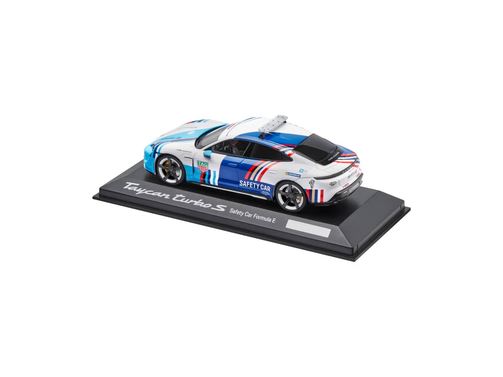Experience Porsche’s motorsport innovation in miniature with the Porsche Taycan Turbo S Safety Car. This 1:43 scale die-cast model replicates the fully electric Taycan Turbo S that serves as the official Formula E safety car, showcasing Porsche’s commitment to performance and sustainability.
