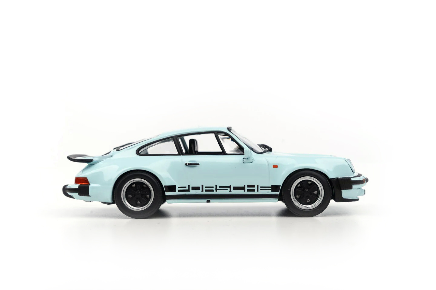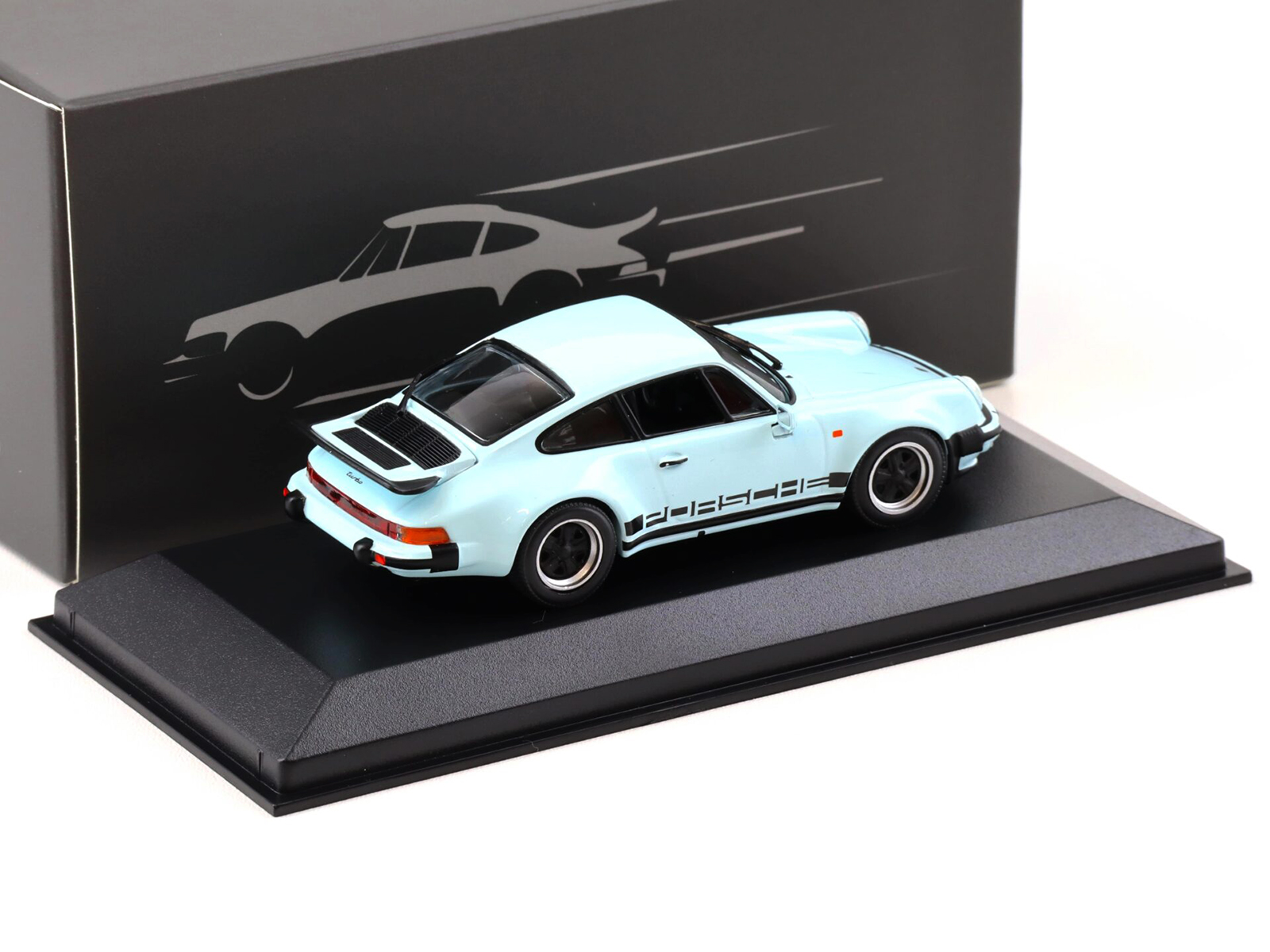 The exclusive 1:43 scale model of the Porsche 911 Turbo 50 Years (930) in Polar Blue showcases unrivalled exhilaration of a track car to the road. To celebrate the 50th anniversary of this icon, Porsche is launching this exclusive limited-edition model car. Die-cast.