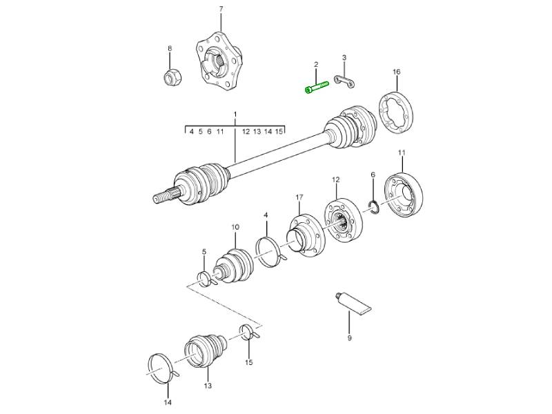 The Porsche Bellow Clamp for CV Boot is a genuine OEM clamp designed to secure the constant velocity (CV) joint boot in place. This heavy-duty band keeps the rubber boot tightly sealed to the driveshaft and flange, ensuring that vital CV joint grease stays inside while dirt, water, and debris stay out.