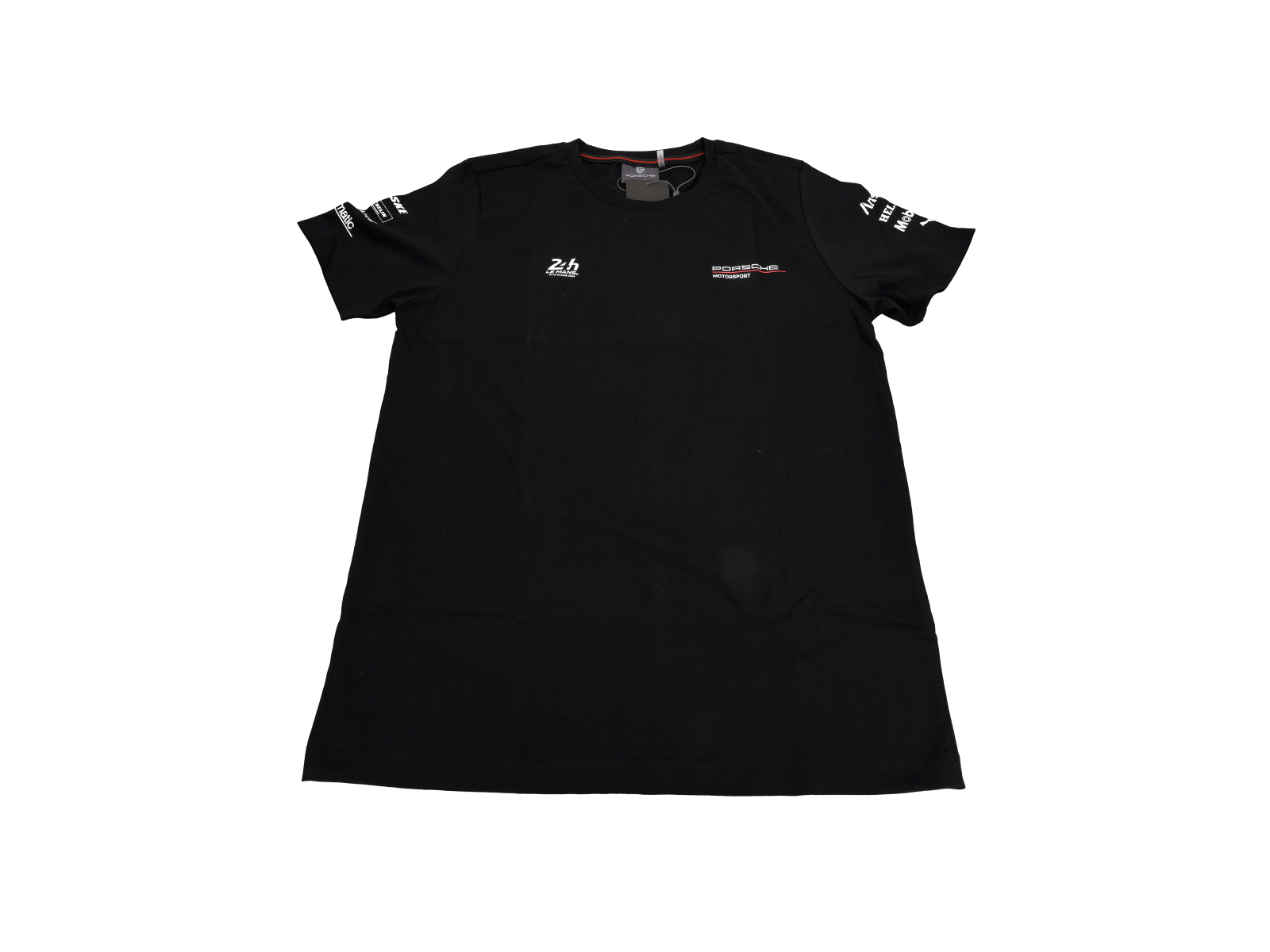 High-quality Porsche T-shirt with crew neck. Decorated with a print of the historic Porsche crest on the front and a Porsche silicone print on the back. Story label on the hem.