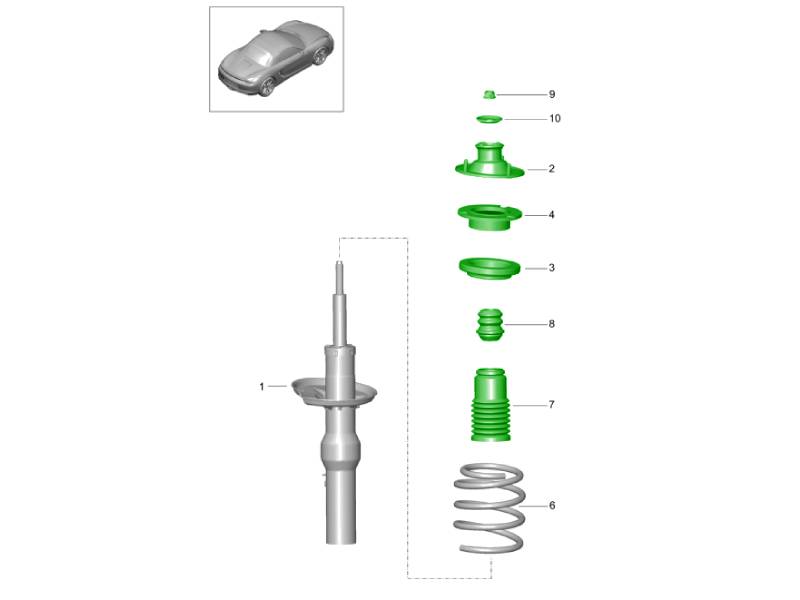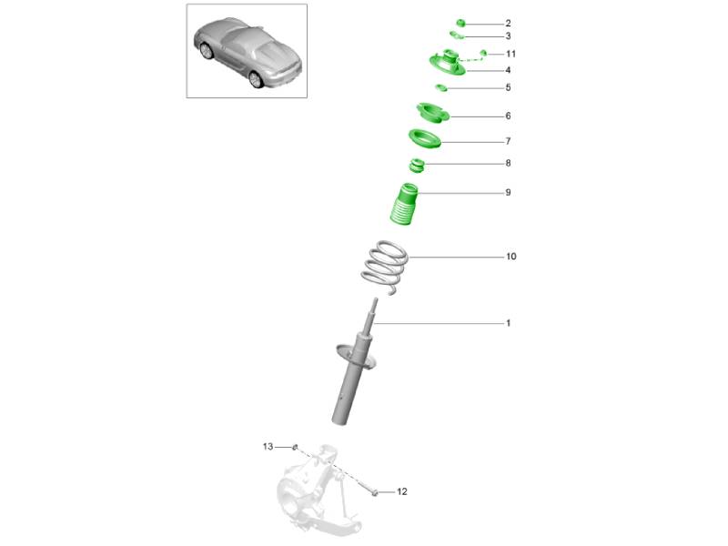 使用这款全面的检修套件,即可更换保时捷 997 MKI C2 / C2S 前减震器/支柱总成的上支座。