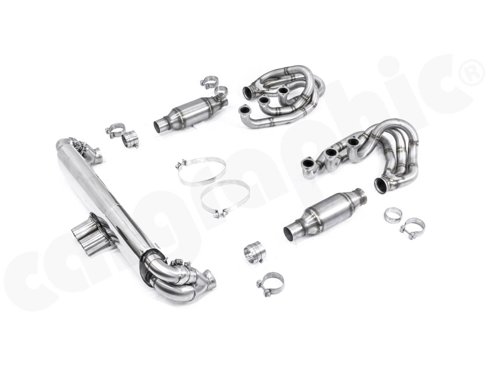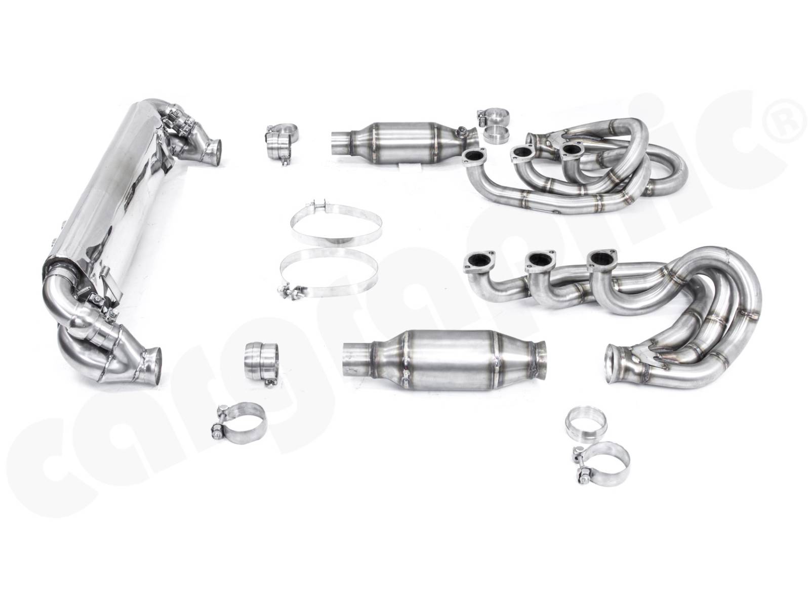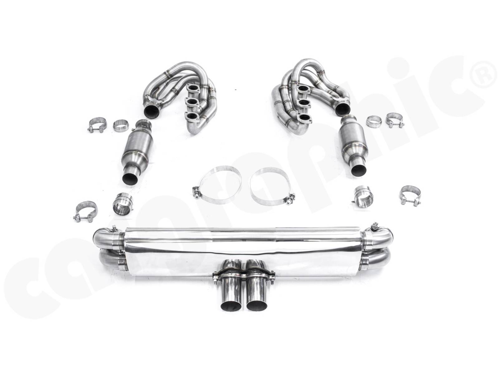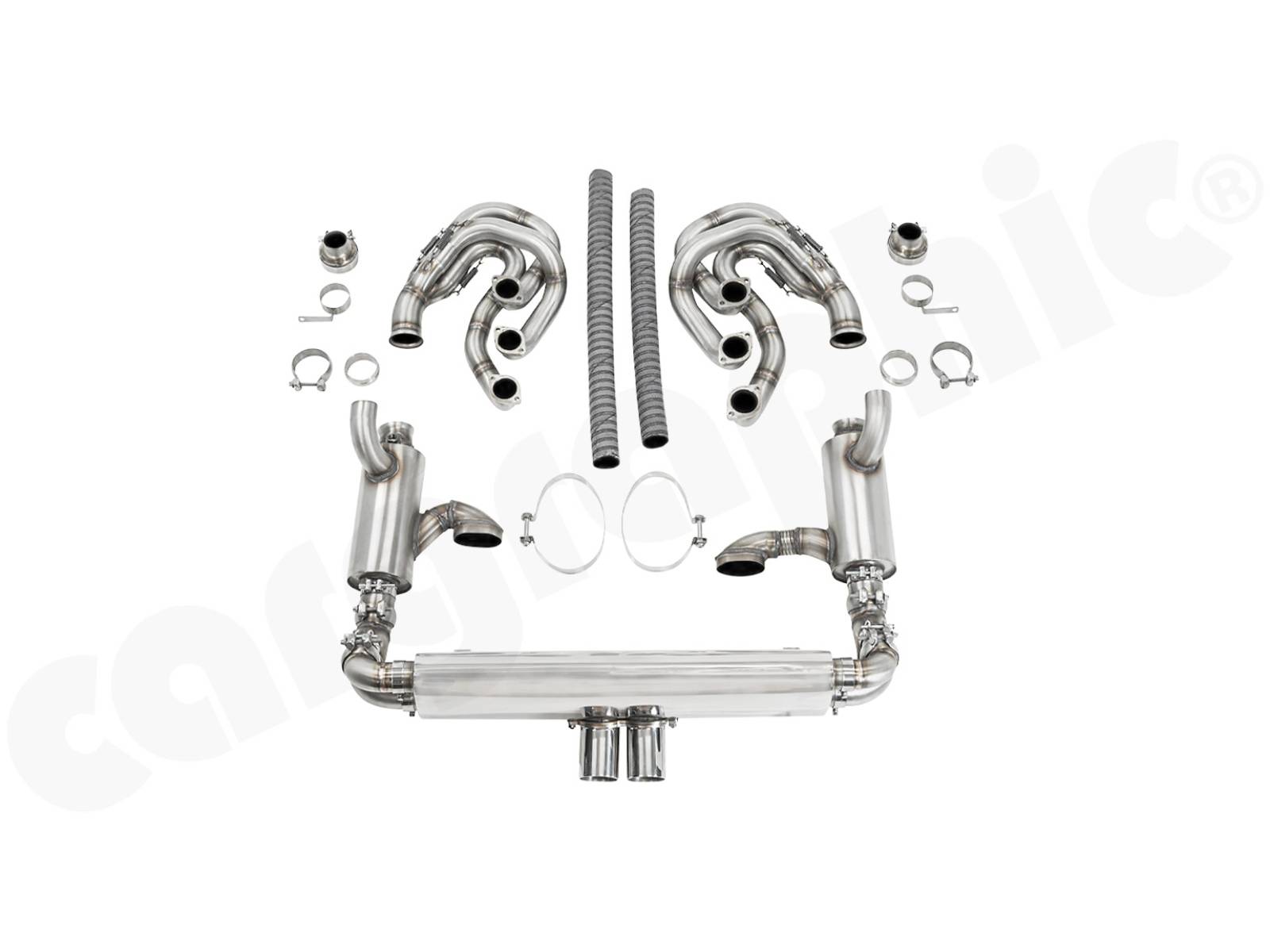 CARGRAPHIC GT Sport 排气系统,配备 ID42 GT 歧管套件,带/不带2x200cpsi 催化转化器,带加热功能、排气阀和 4>2 流后消音器,带 2x70mm 中央出口,GT3 外观。