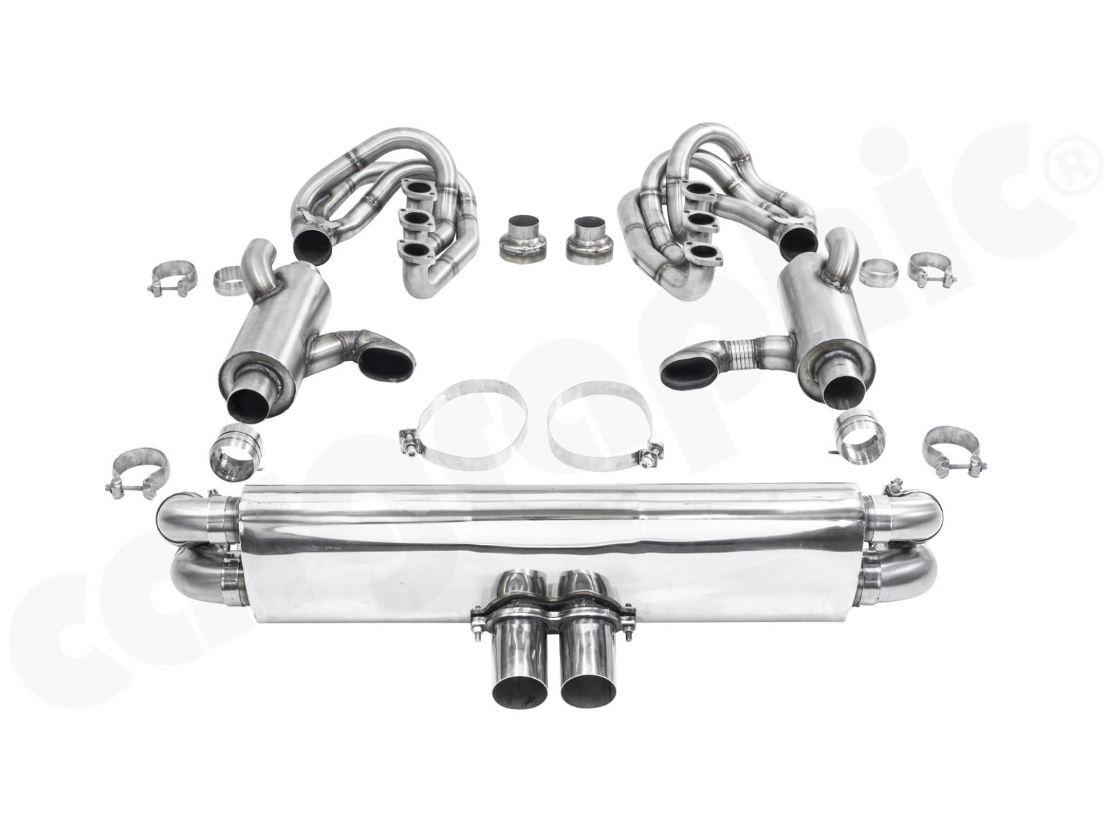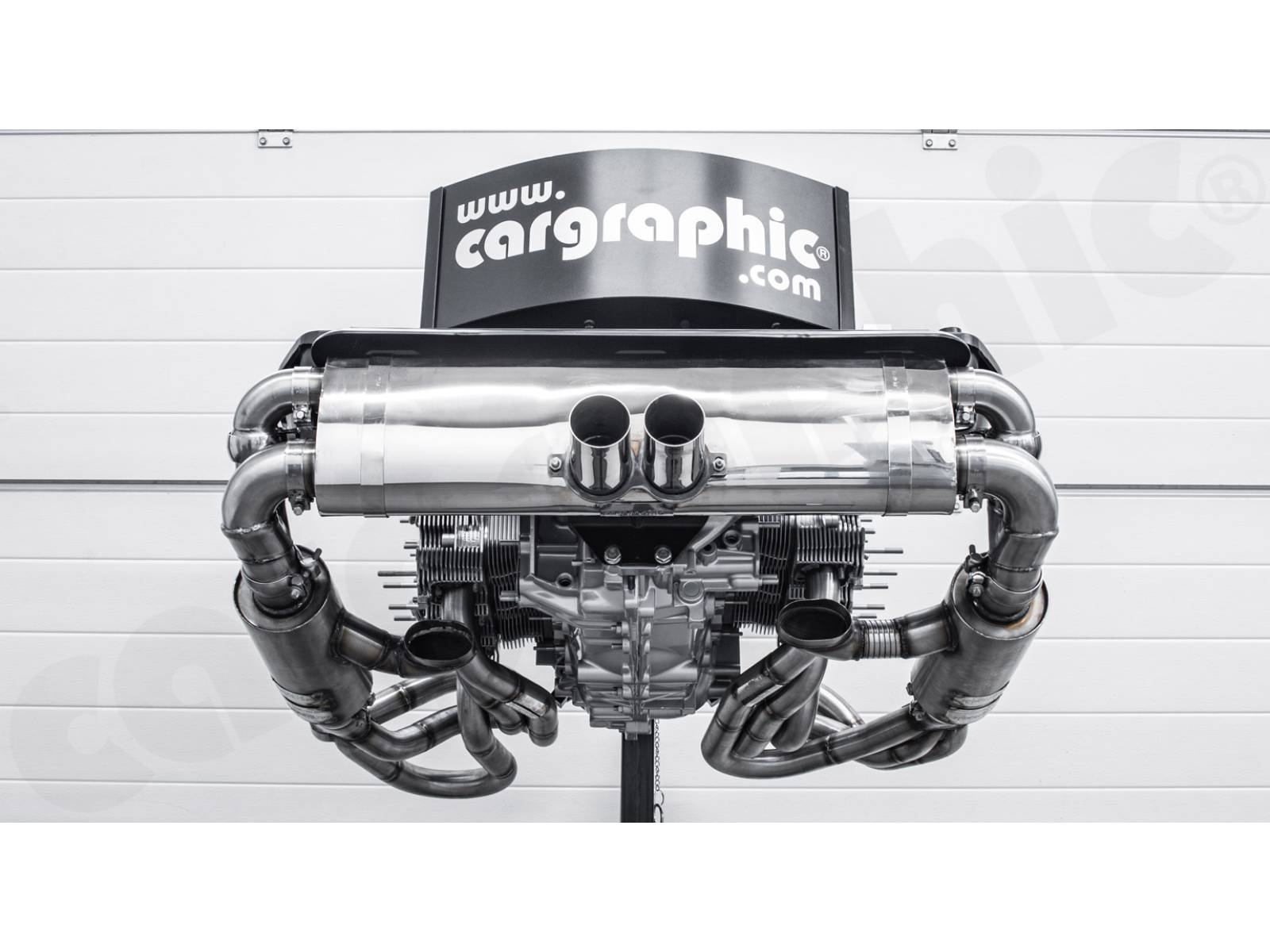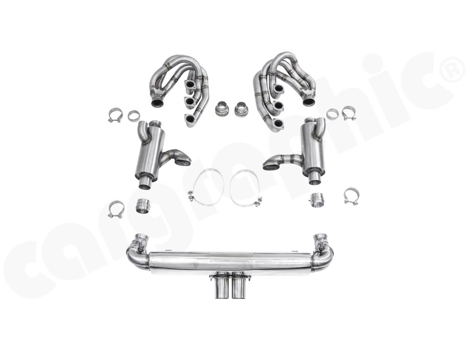 CARGRAPHIC GT Sport 排气系统,配备 ID42 GT 歧管套件,带/不带2x200cpsi 催化转化器,带加热功能、排气阀和 4>2 流后消音器,带 2x70mm 中央出口,GT3 外观。