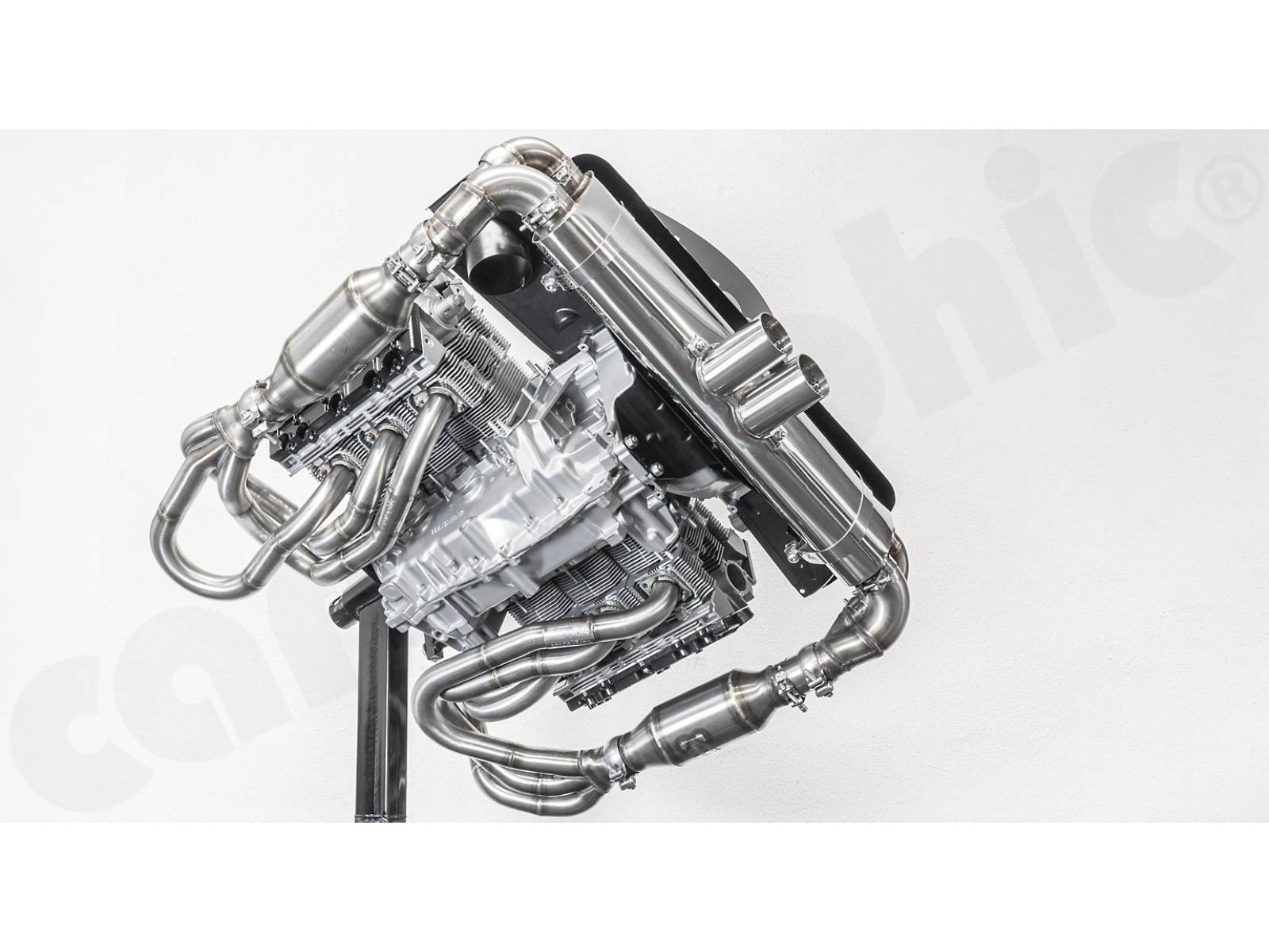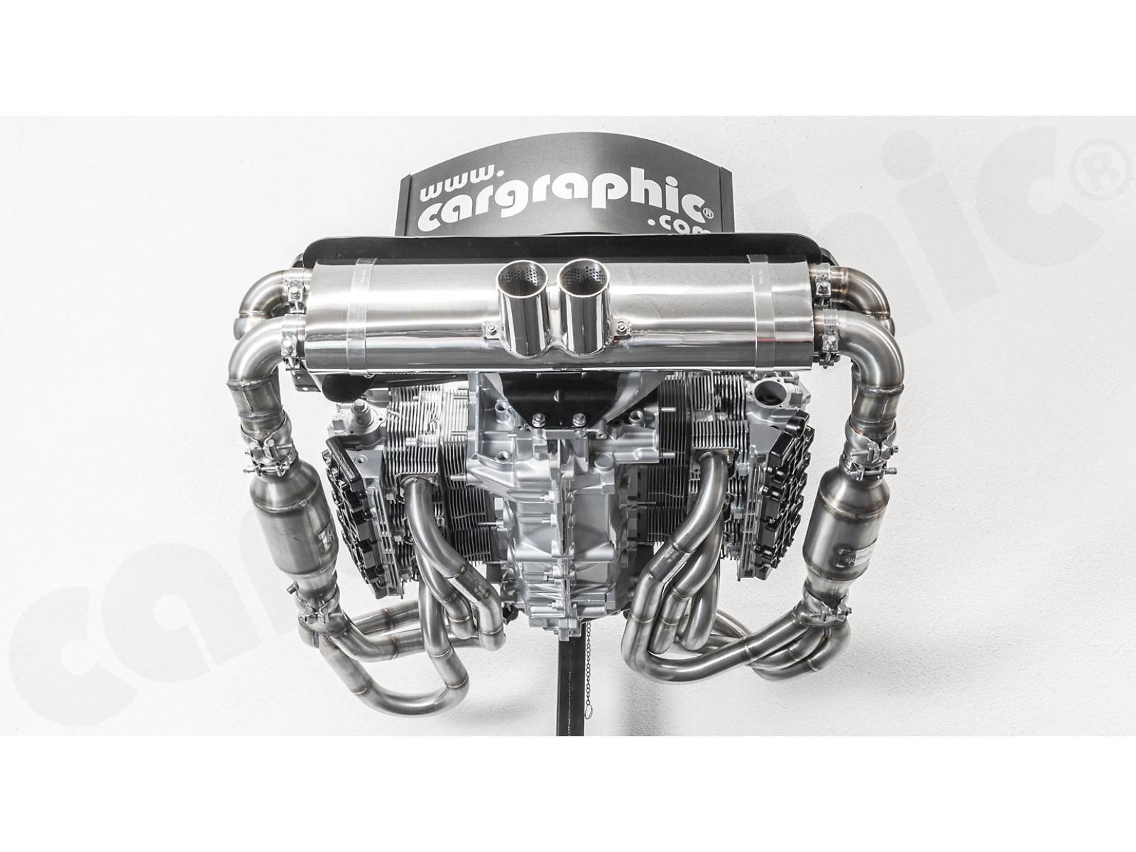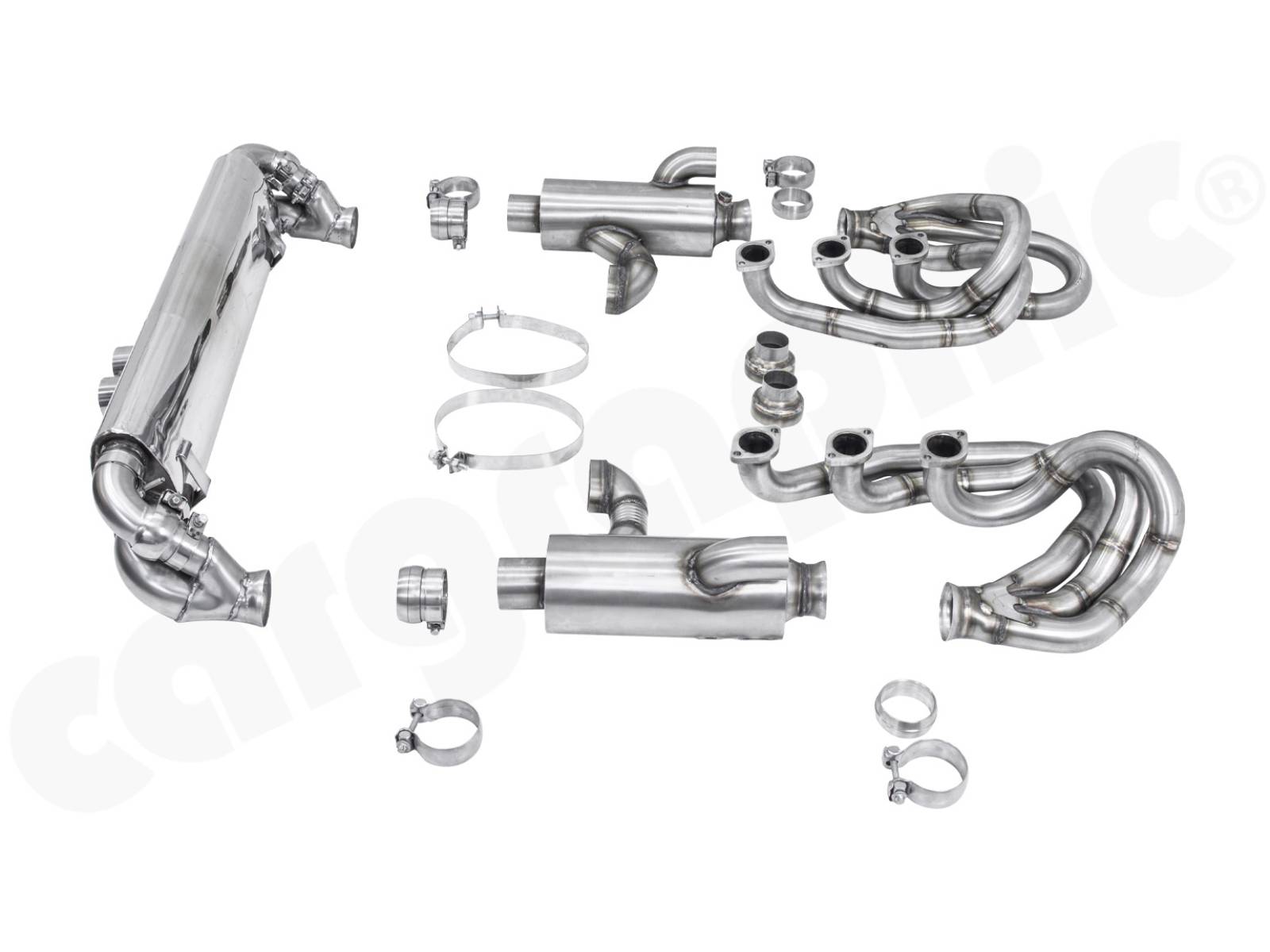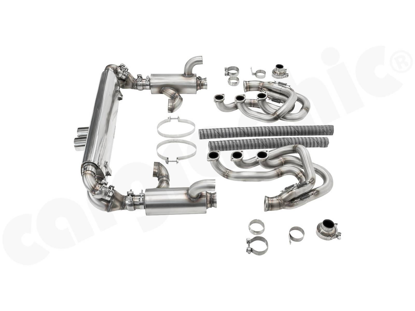 CARGRAPHIC GT Sport 排气系统,配备 ID42 GT 歧管套件,带/不带2x200cpsi 催化转化器,带加热功能、排气阀和 4>2 流后消音器,带 2x70mm 中央出口,GT3 外观。