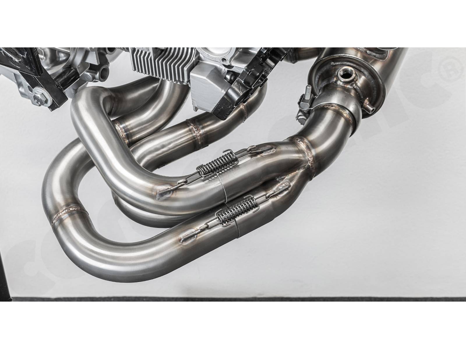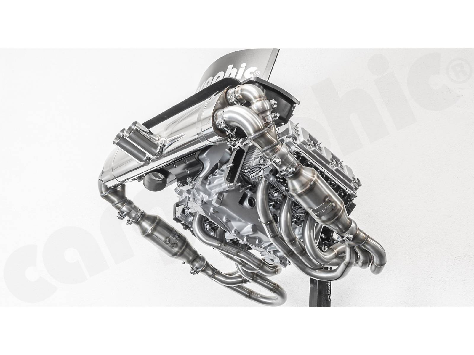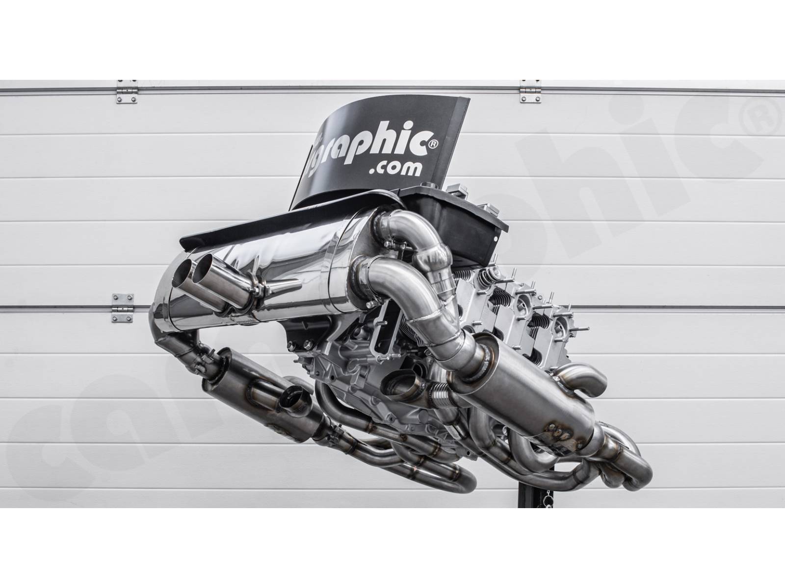 CARGRAPHIC GT Sport 排气系统,配备 ID45 GT 歧管套件,带/不带2x200cpsi 催化转化器,带加热阀和排气阀 - 与 OEM GT3 后消音器配合使用。
