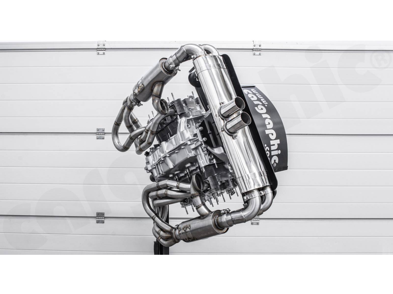 CARGRAPHIC GT Sport排气系统,复古风格,配备ID45 GT歧管套件,可选配2个200cpsi催化转化器、加热功能、排气阀和4>2流式后消音器,中置2x70mm排气口,GT3外观。